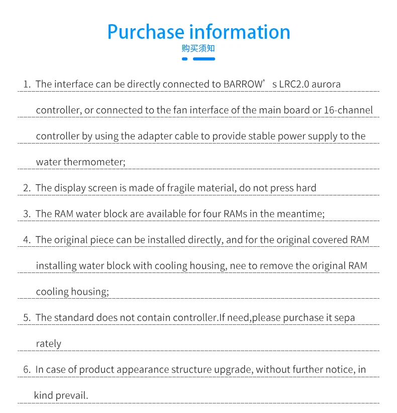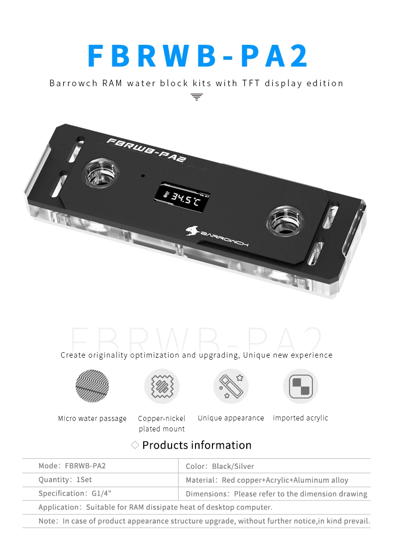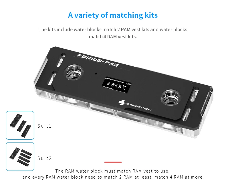 Comprar Barrowch-Kit de bloques de agua FBRWB-PA2 F RAM, iluminación LRC 2,0 (5v, 3 pines), estándar con armadura de refrigeración RAM para DDR5