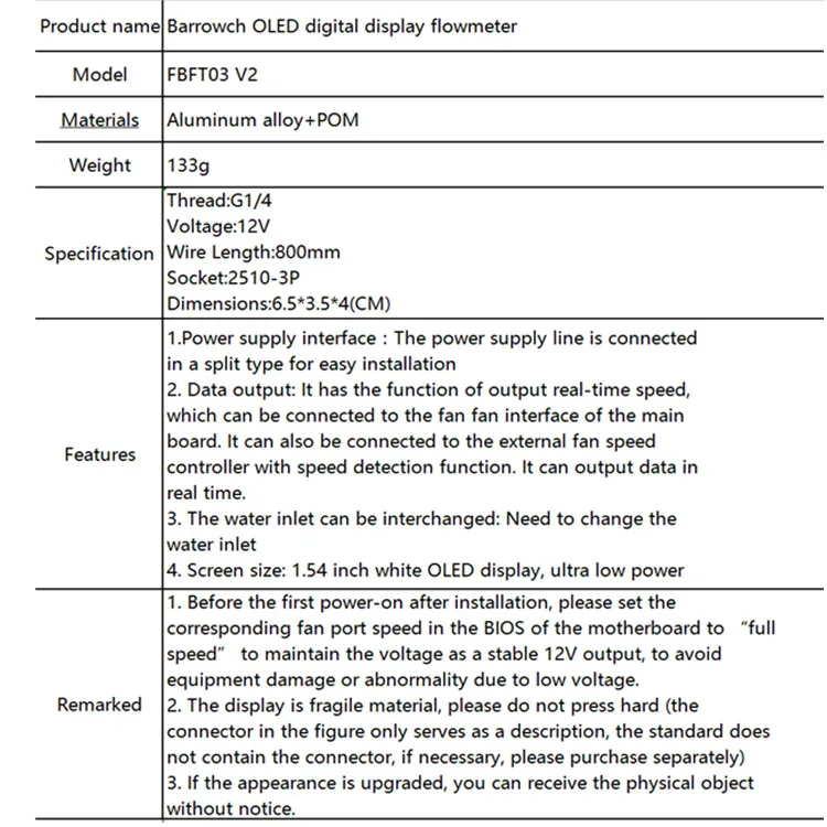 BARROWCH-medidor de flujo de agua, Sensor de flujo G1/4 '', pantalla Digital de temperatura, Kit de refrigeración por agua, accesorio de construcción FBFT03 V2