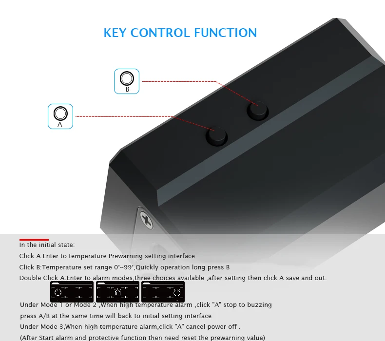 En Modo 1 o 2, cuando la alarma de alta temperatura, haga clic en "A" para detener el zumbido