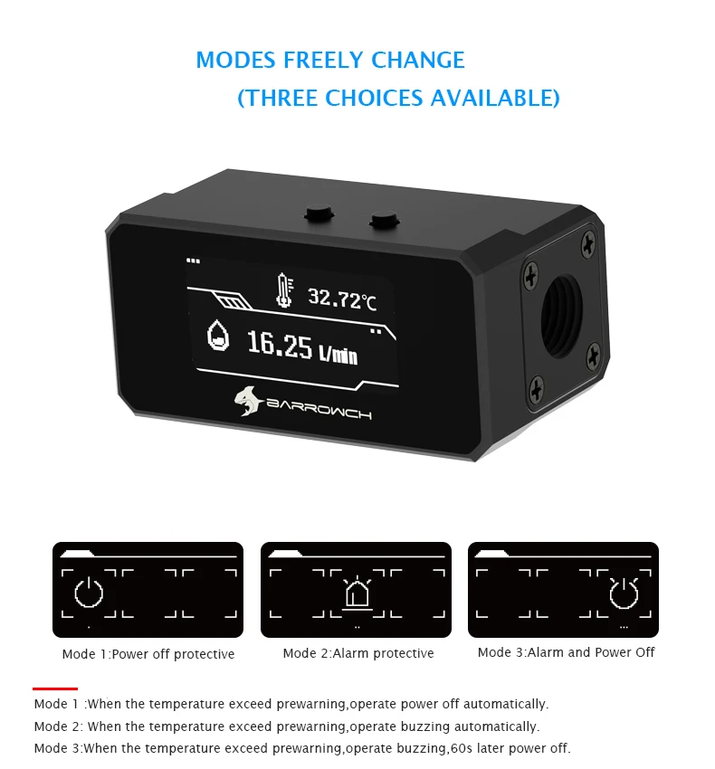 Comprar BARROWCH-medidor de flujo de temperatura de computadora G1/4 ", alarma de monitoreo de inteligencia, medidor de flujo OLED de construcción de bucle de líquido personalizado, FBFT08