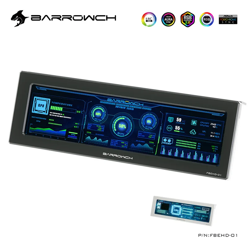 Comprar BARROWCH-Monitor de temperatura TFT, dispositivo de Hardware de computadora, AIDA64 extendido de 8,8 pulgadas, luz de 5V, 1920x480px,FBEHD-01