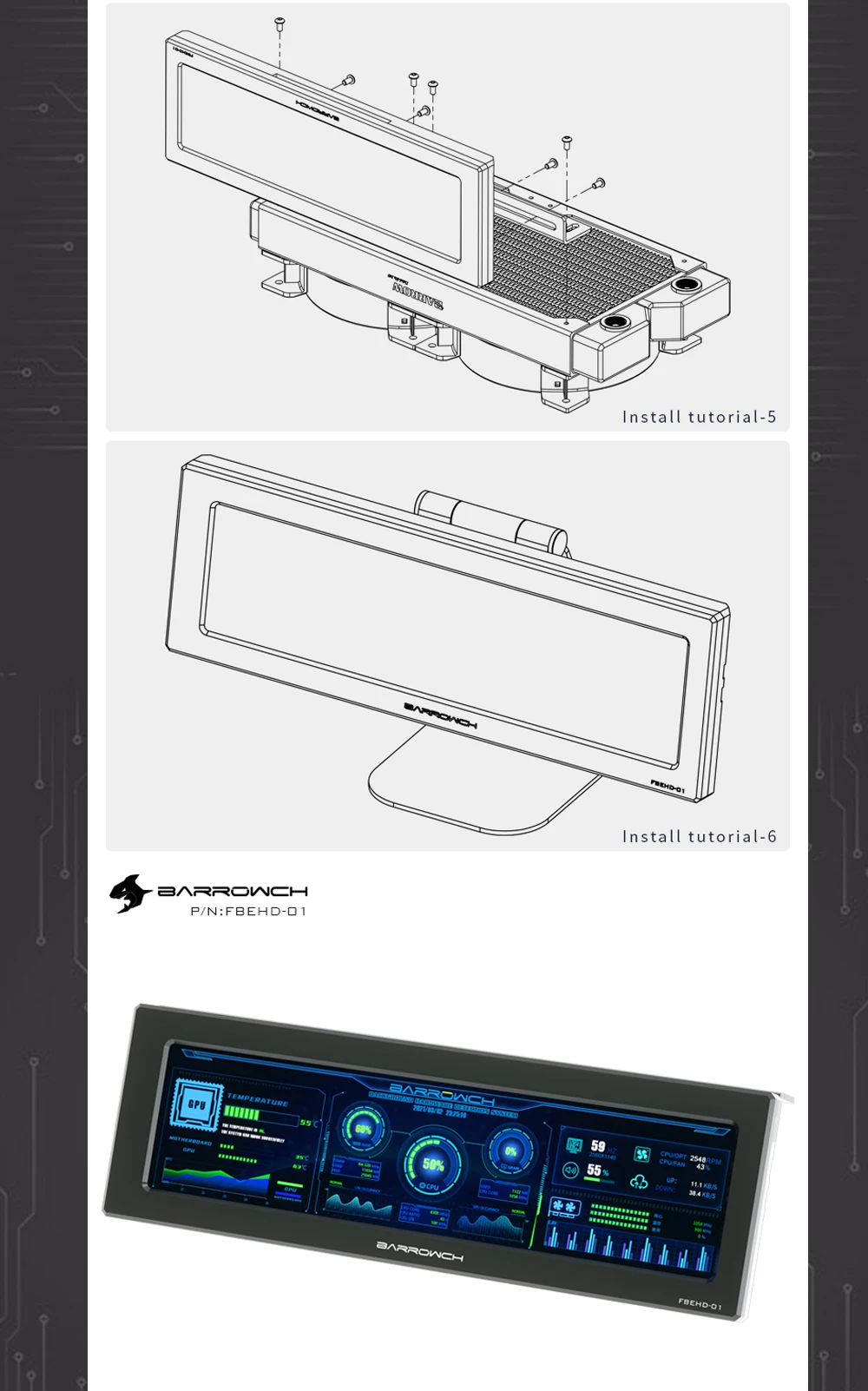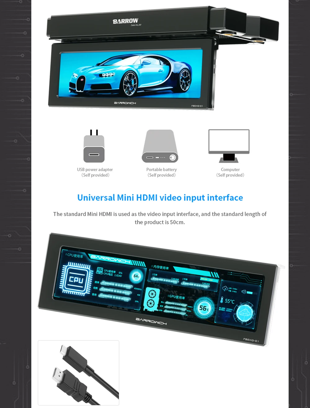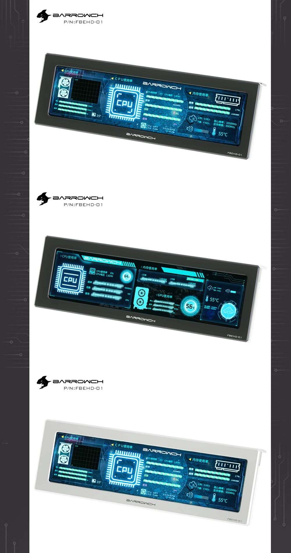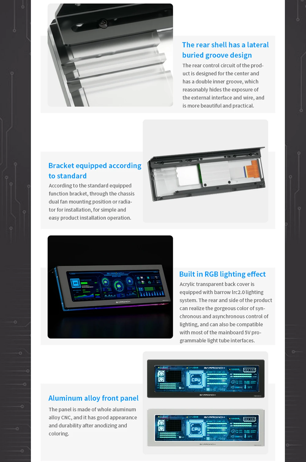 Barrowch-pantalla de expansión externa para ordenador, Monitor LCD de 8,8 pulgadas, 1920x480px, CPU + GPU + RAM, Detector de estado en tiempo Real FBEHD-01