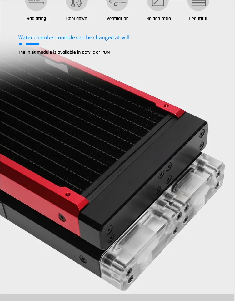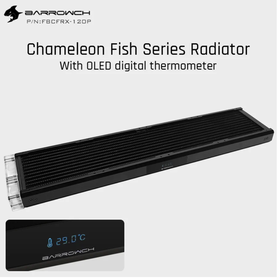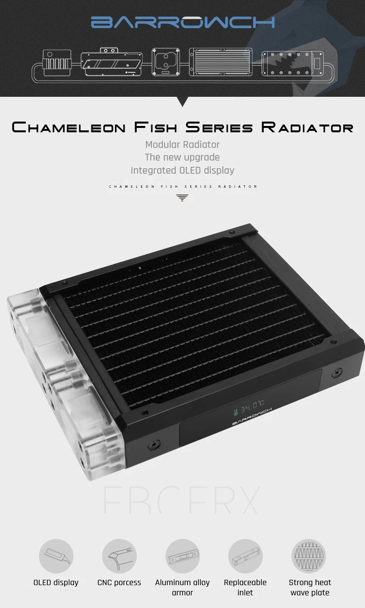 Comprar Barrowch-radiador Modular de pez camaleón FBCFRX-480, accesorio con pantalla OLED, módulo de entrada de acrílico/POM, adecuado para ventilador de 480mm, 120mm