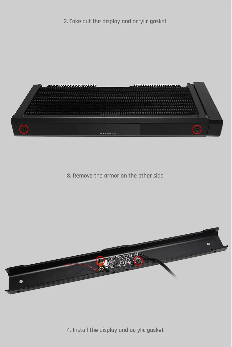 Barrowch-radiador Modular de pez camaleón FBCFRX-480, accesorio con pantalla OLED, módulo de entrada de acrílico/POM, adecuado para ventilador de 480mm, 120mm