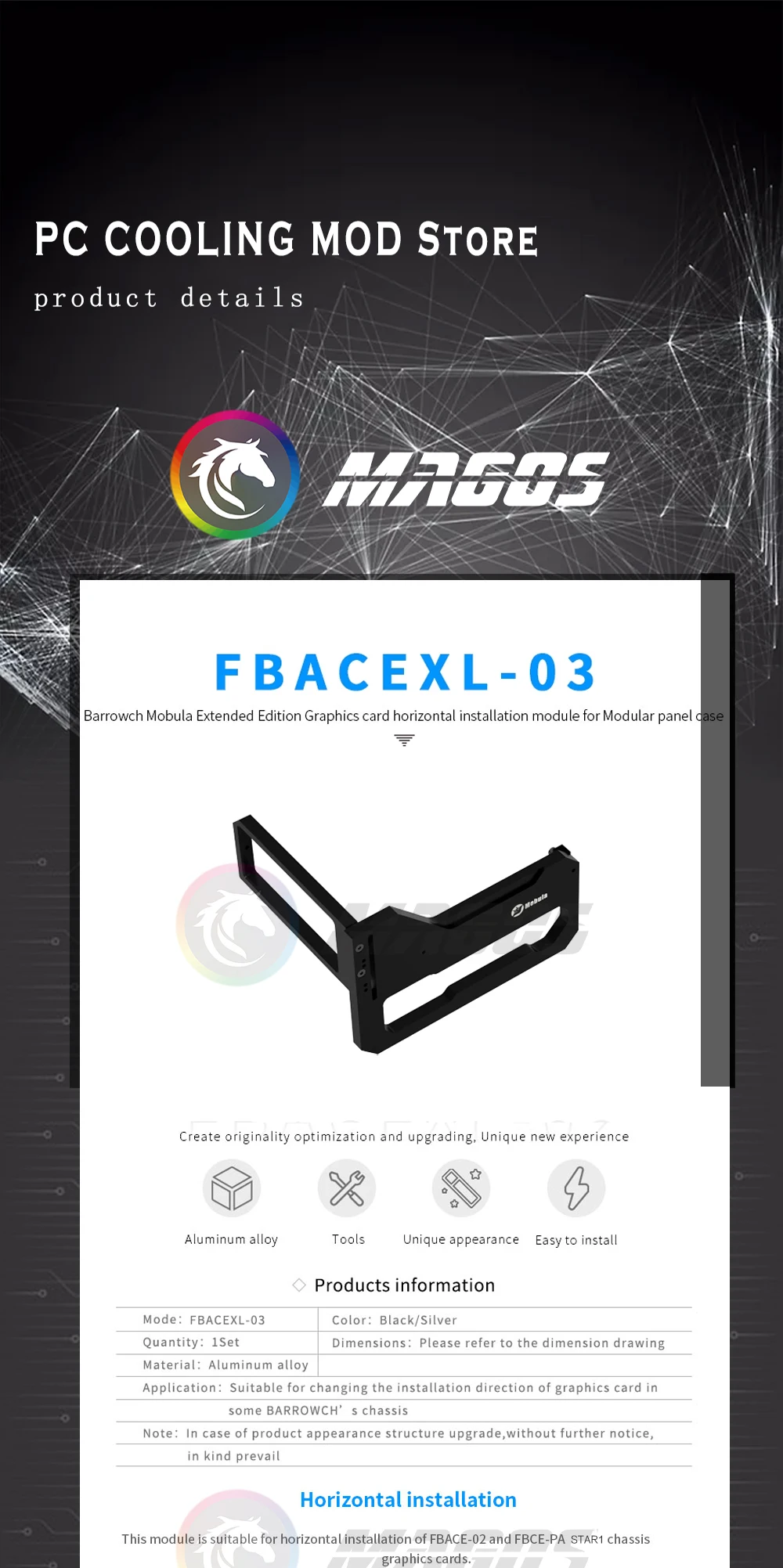 Comprar Barrowch-soporte de montaje Vertical de GPU para Mobula, carcasa de Panel Modular, tarjeta gráfica, módulo de instalación Horizontal, FBACEXL-03
