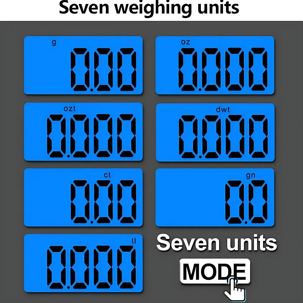 Pantalla: LCD Tamaño de la pantalla LCD: 3,2x1,2 cm/1,26 "x 0,47" (largo x ancho) Dimensiones del artículo: 13x7,5x2,5 cm/5,04 "x 2,99" x 0,79 (largo x ancho x Alto) Tamaño de la plataforma de pesaje: 7,5x6,3 cm/2,95 "x 2,48" (largo x ancho) Cantidad: 1 unidad Nota: 1. Permita un error de 1-3g debido a la medición manual. Por favor, asegúrese de que no le importa antes de pujar. 2. a la diferencia entre diferentes monitores Debido, es posible que la imagen no refleje el color real del artículo. Gracias 3. Estimado, por favor distinga entre precisión 0,01g y precisión 0,1g El paquete incluye Báscula electrónica digital de bolsillo para joyería (la batería no está incluida) 1 pieza x manual de instrucciones en inglés