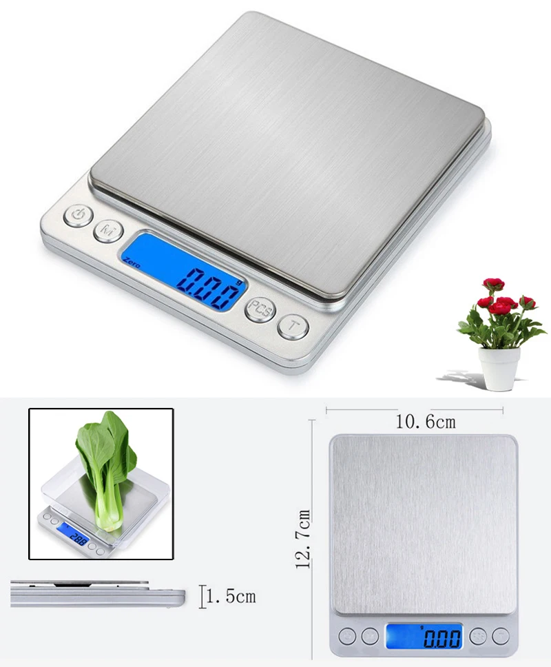 Balanza electrónica de 500g/0,01g, 3000g/0,1g, balanza de joyería, gramo, LCD, cocina, peso de alimentos para laboratorio de pesaje