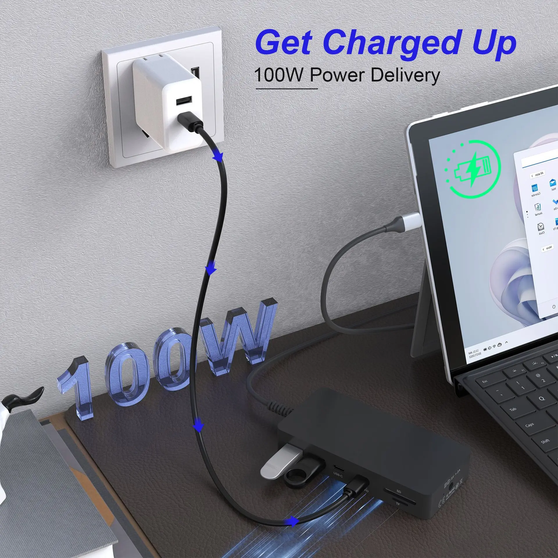 Comprar Base 11 en 1 para Microsoft Surface con 3 puertos USB + 2 puertos USB C PD 100W + 5Gbps de datos Compatible con HDMI tipo C Hub para Surface Laptop 5