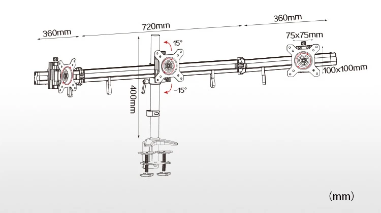 Comprar Base de abrazadera giratoria 360 para monitor lcd, soporte de montaje de escritorio para pantalla de 10 "-24", 8kg, 100x100, de aluminio, tres brazos