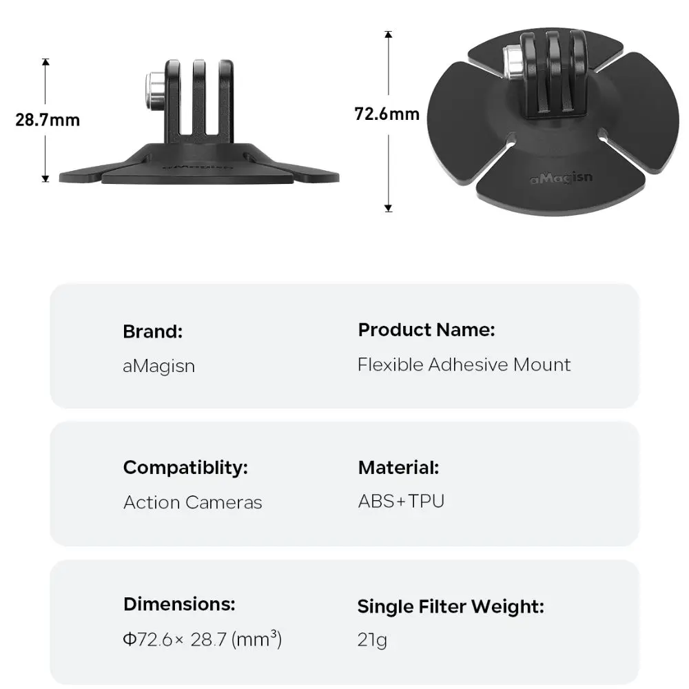 Diseño de fondo Flexible nuevo y de alta calidad, que se ajusta firmemente a varias superficies de objetos, fácil instalación en varios escenarios Adhesivo fuerte 3M, firmemente adherido, resistente a la temperatura y la humedad, sin miedo al viento y la lluvia. La superficie adhesiva suave inferior ha sido diseñada con una abertura. Facilita el manejo de superficies adhesivas complejas. Equipado con un adaptador de dos garras a 1/4 ", las interfaces de tres garras y 1/4" son compatibles con cámaras de gran angular y cámaras panorámicas. Material: ABS + TPU Tamaño: 72,6*28,7mm Paquete: 1 x Adhesivo Base Adhesivo Flexible Montaje