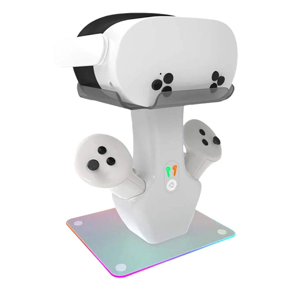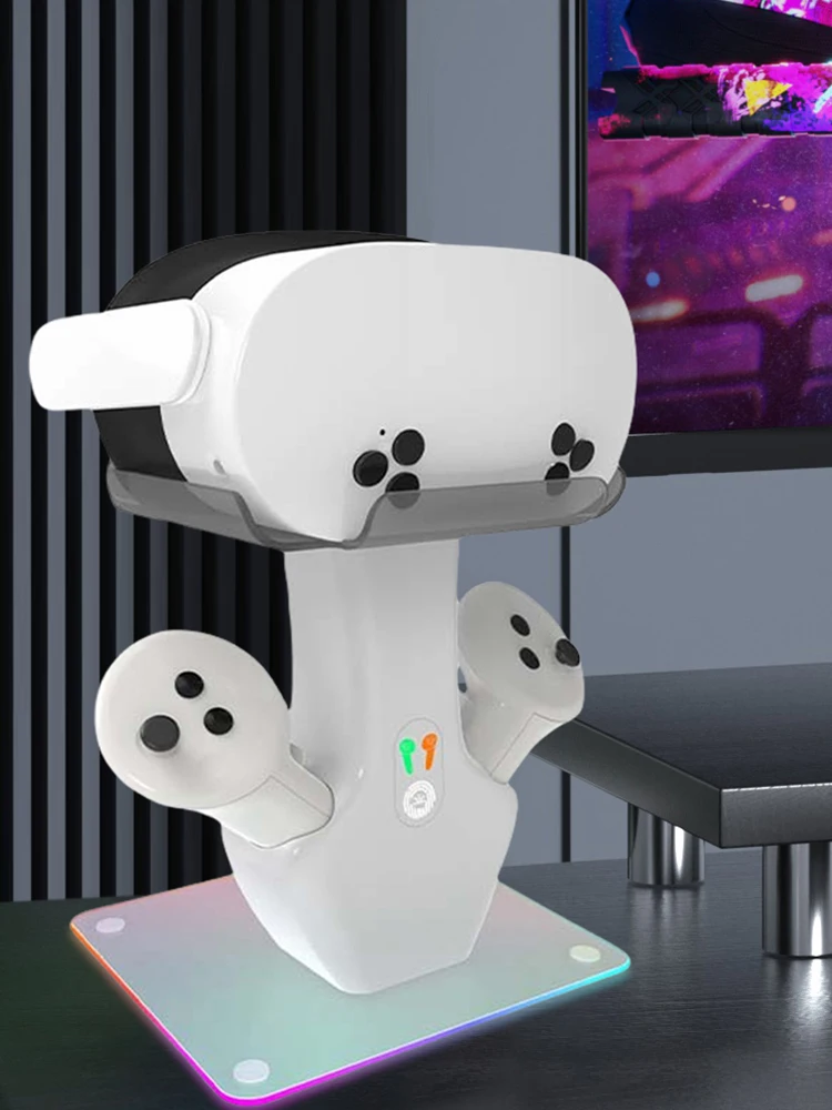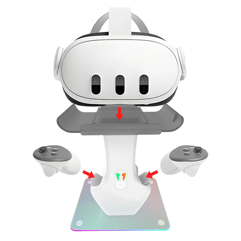 Compatible conAuriculares y controladores Quest 3S VR y Quest 3 VR.Con una iluminación RGB eficaz, combina carga y organización en un diseño elegante.