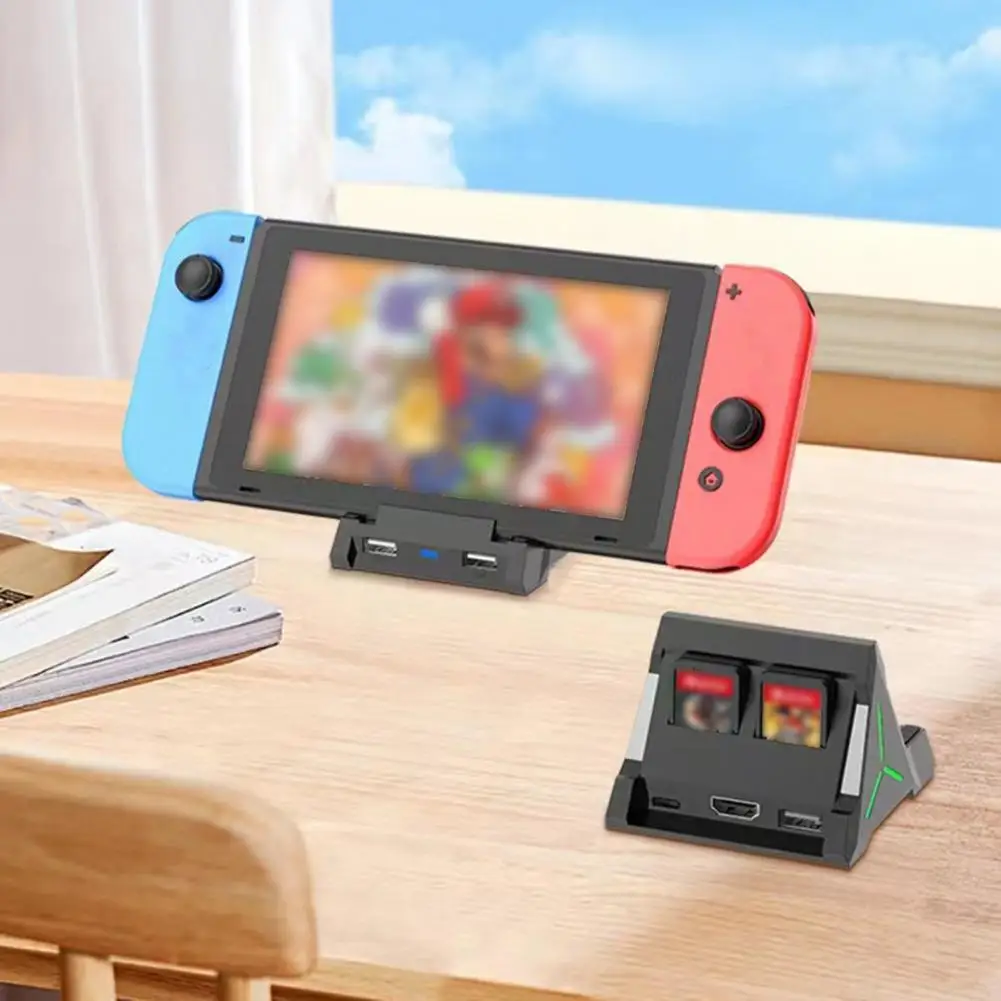 Base de carga para consola de juegos Base de carga multifuncional para consola de juegos con ranuras para tarjetas Adaptador de TV para Nintendo Switch para jugadores