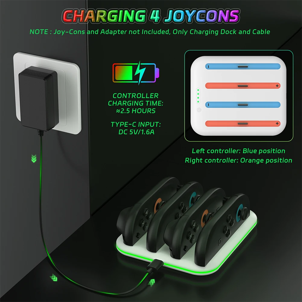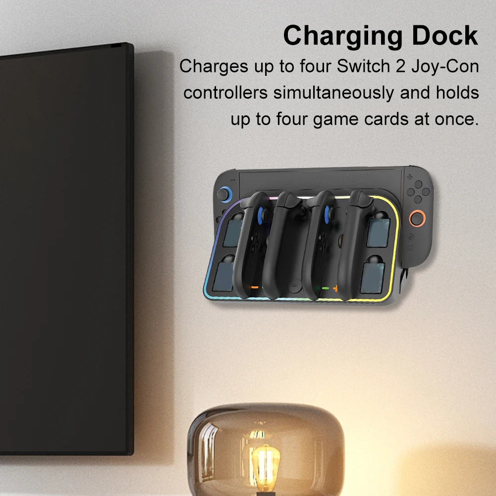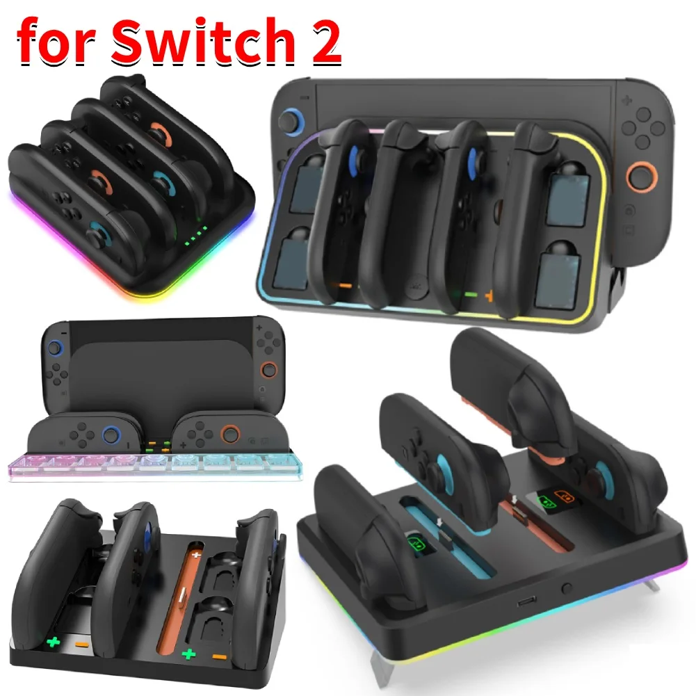 Comprar Base de carga de controlador para Switch 2, estación de soporte de carga Joycons para accesorios de interruptor, compatible con 4 Joy-con
