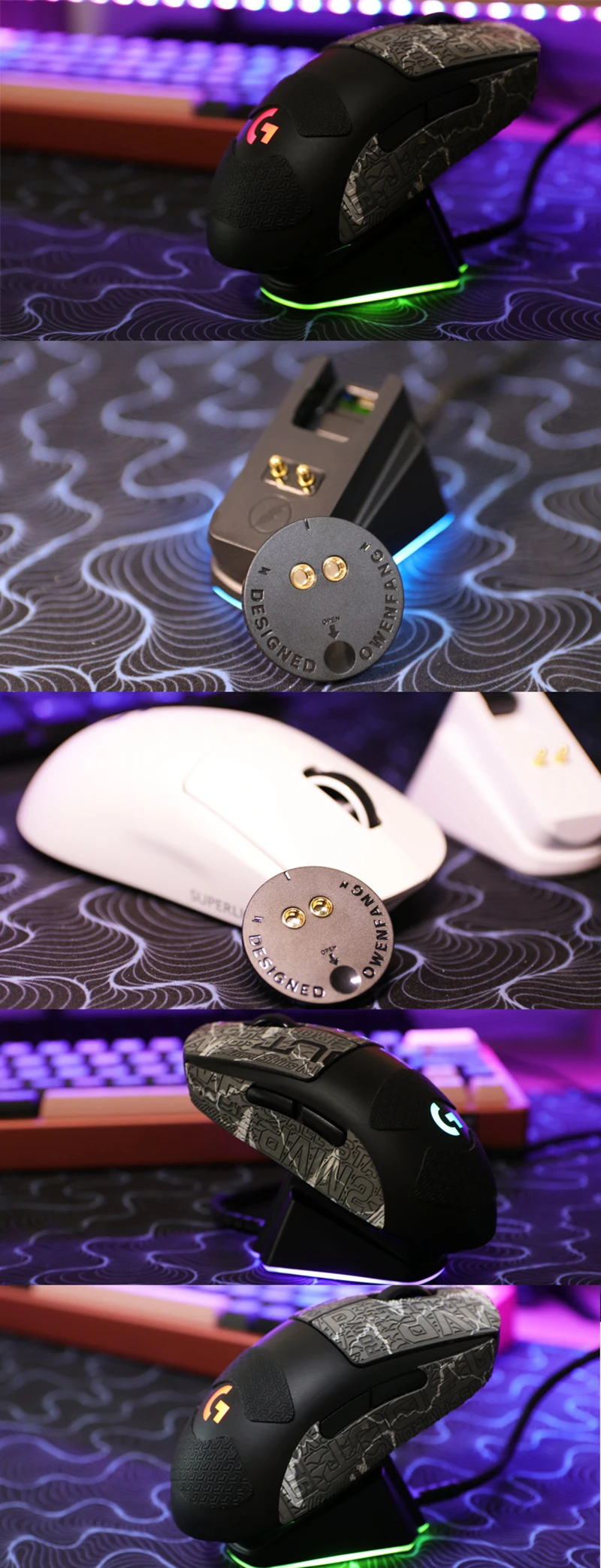 Base de carga de energía RGB de plástico inalámbrico para Logitech G Pro X Superlight Wireless G903 G502 G703