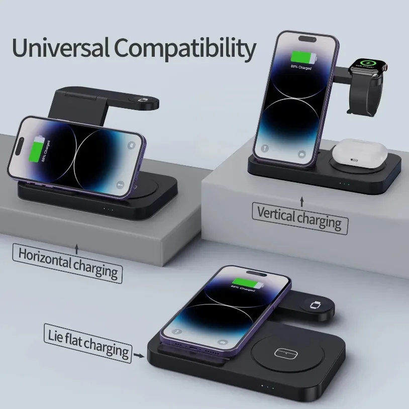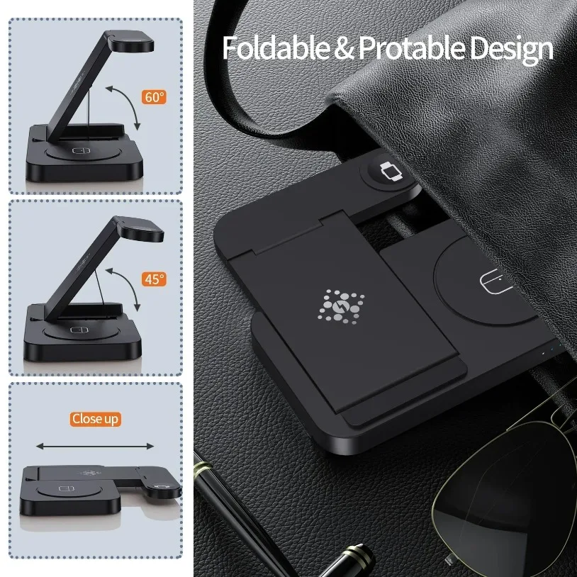 Comprar Base de carga inalámbrica de viaje 4 en 1, carga plegable para iPhone 17 ~ 12 Pro Max iWatch 10 ~ 2 SE AirPods Pro o para Samsung S25 S24