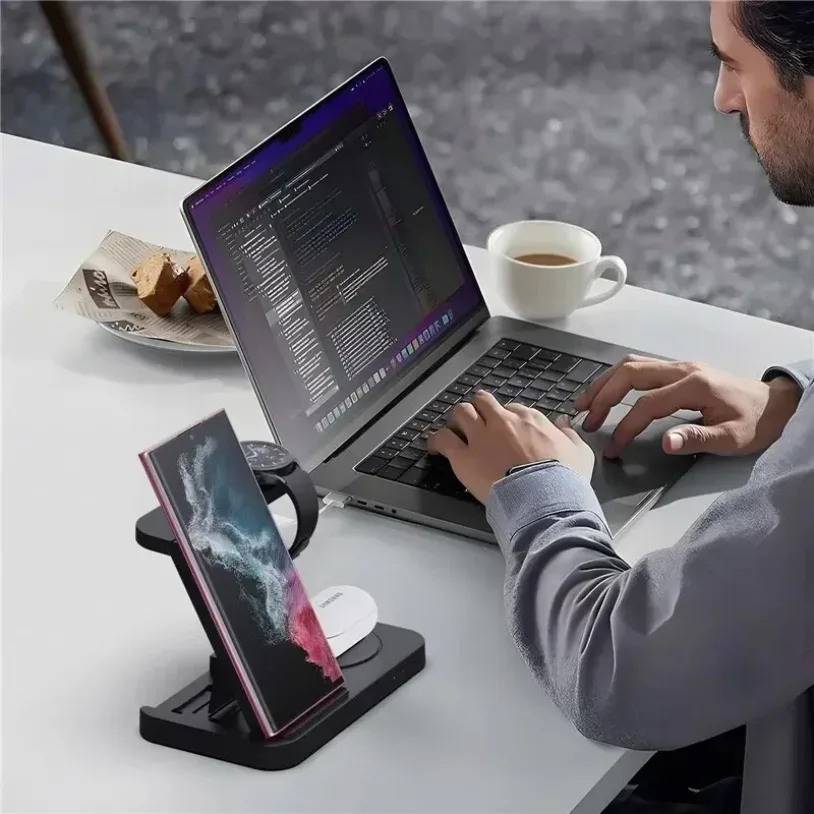 Comprar Base de carga inalámbrica de viaje 4 en 1, carga plegable para iPhone 17 ~ 12 Pro Max iWatch 10 ~ 2 SE AirPods Pro o para Samsung S25 S24