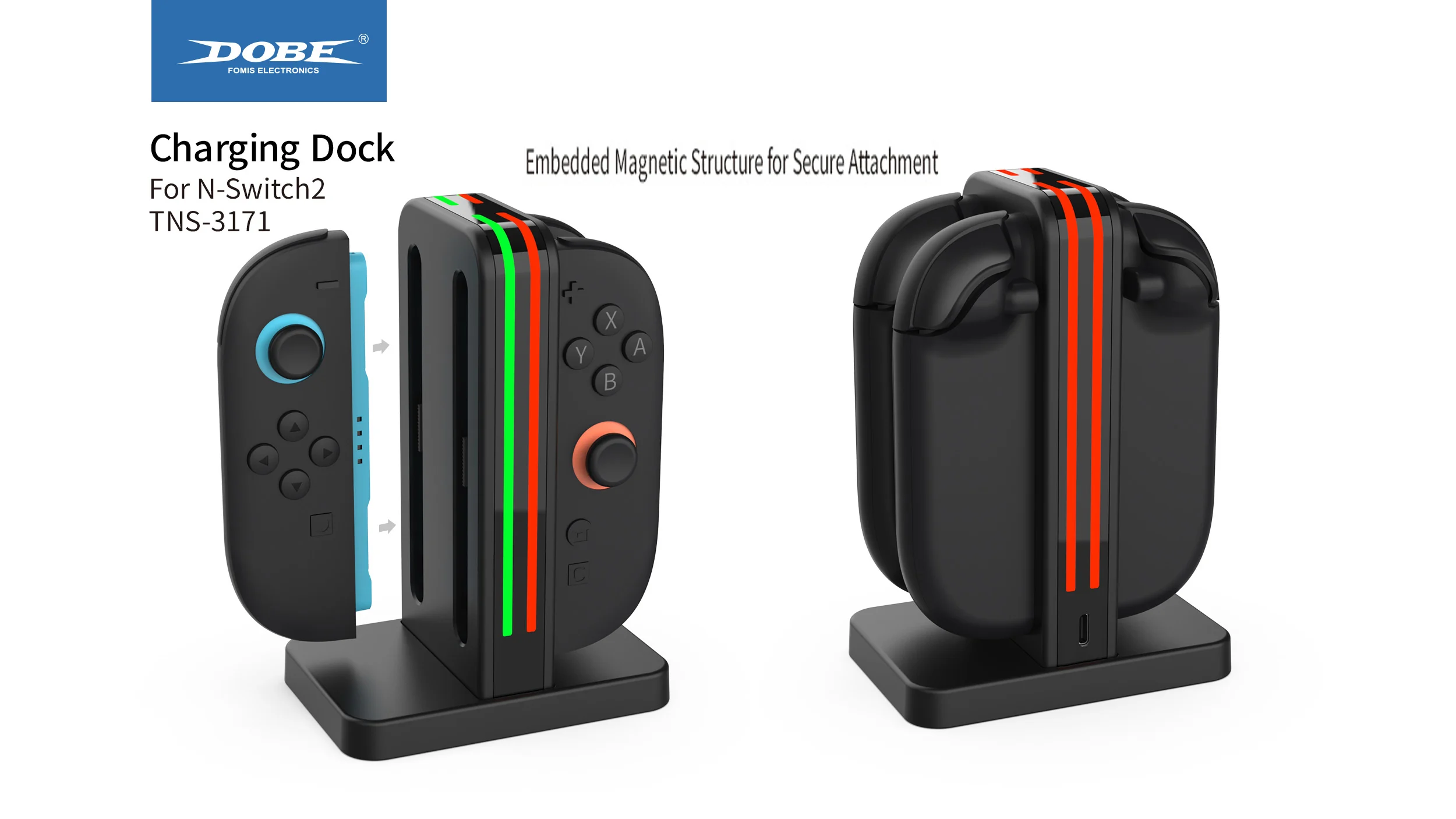 La base de carga magnética Switch 2 utiliza una estructura magnética integrada para lograr una conexión perfecta entre los controladores y la base, lo que garantiza una experiencia de carga estable y eficiente.