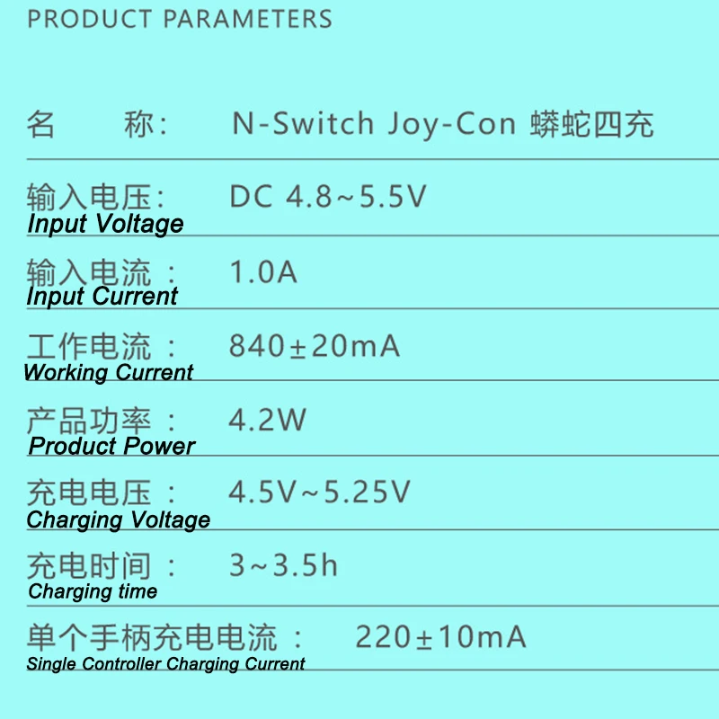 Equipado con una interfaz de enchufe macho USB2.0, compatible con la base de muelle original de n-switch para proporcionar una entrada de energía para el producto.