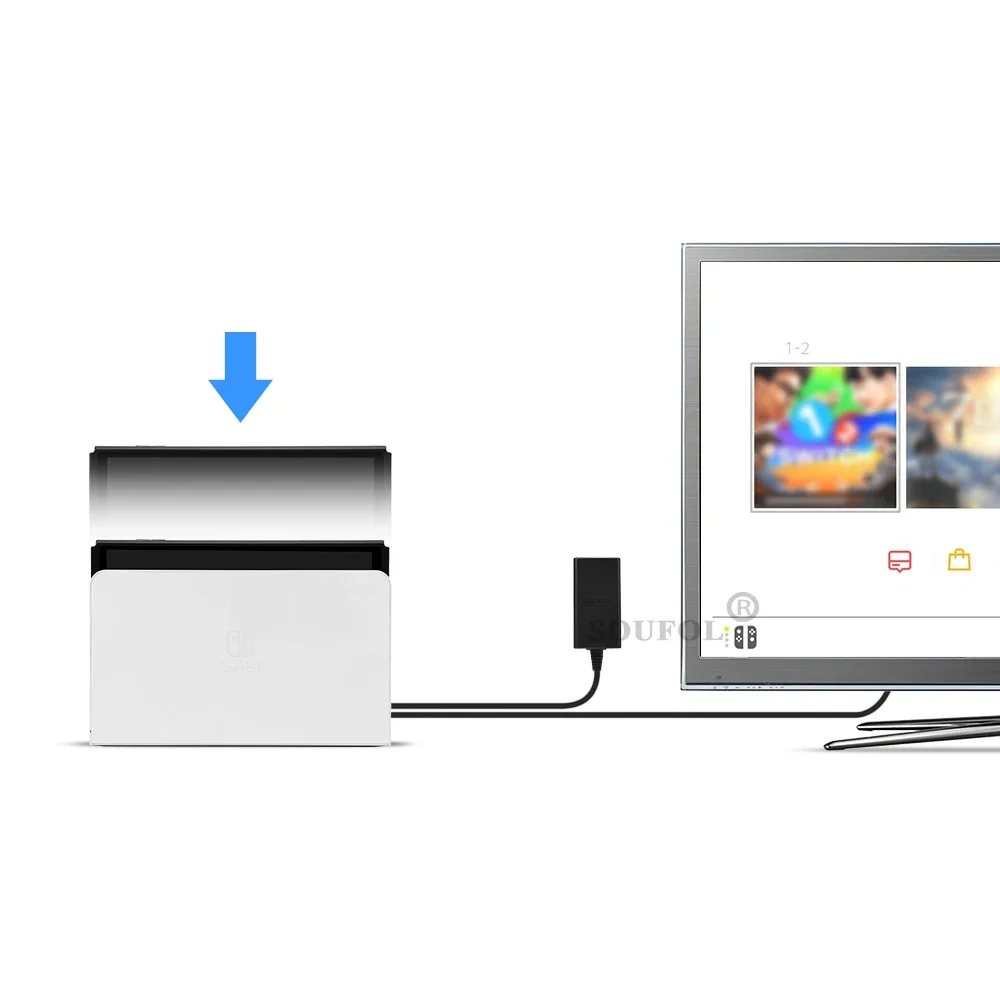 Comprar Base de carga OLED blanca para NS Nintendo Switch, estación de acoplamiento de TV Compatible con HDMI, soporte de base con adaptador de CA, fuente de alimentación