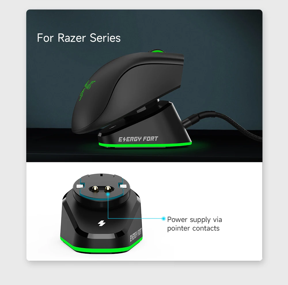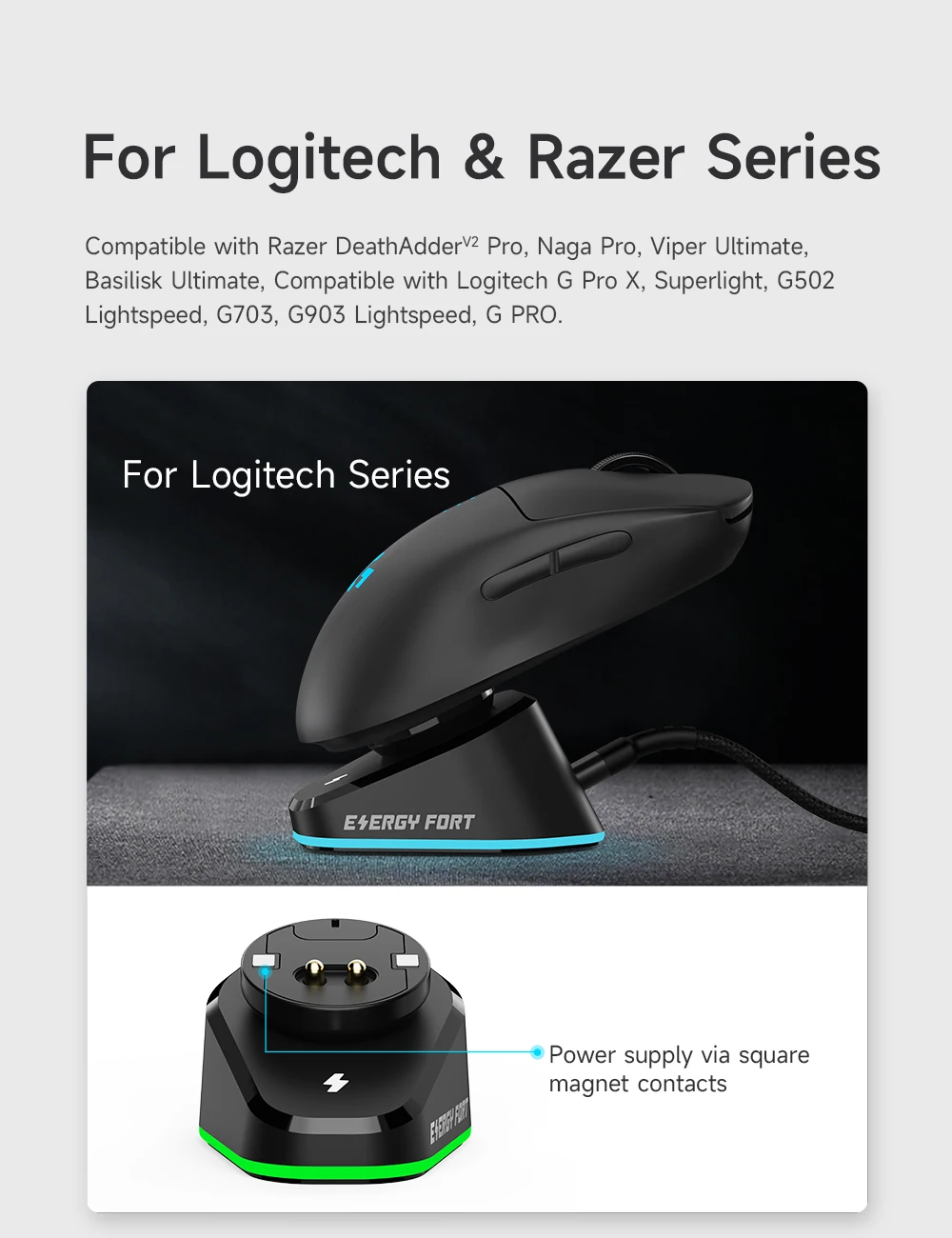 Base de carga EnergyFort para terceros: compatible con PRO X SUPERLIGHT 2,G PRO X SUPERLIGHT,G502X LIGHTSPEED,G502X PLUS,G PRO WIRELESS,G703Hero/ G903Hero,G502 LIGHTSPEED y Razer DeathAdder V2 Pro, naga Pro, Viper Ultimate, PRO X SUPERLIGHT 2,Basilisk Ultimate Wireless Gaming Ratones. No es el cargador original OEM.