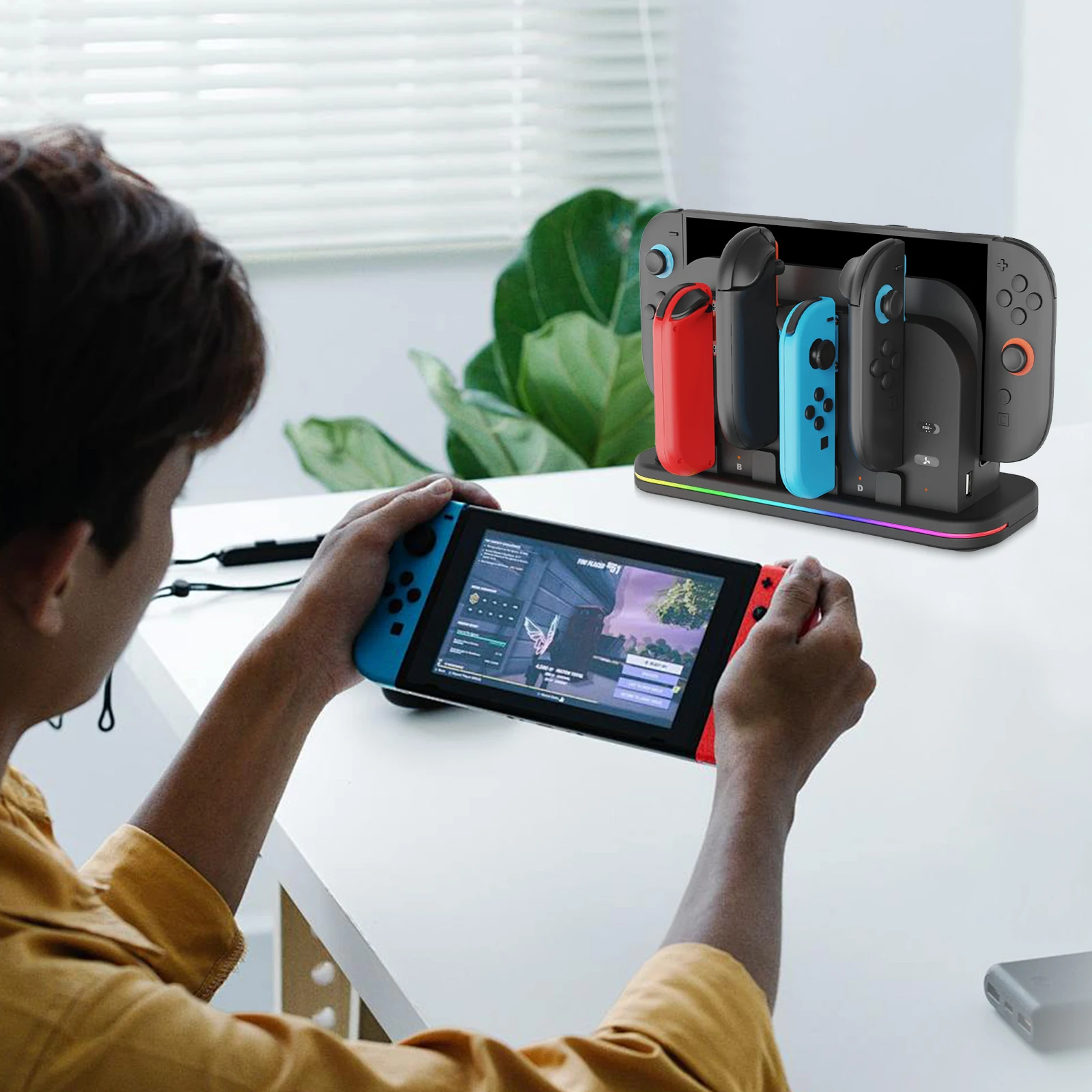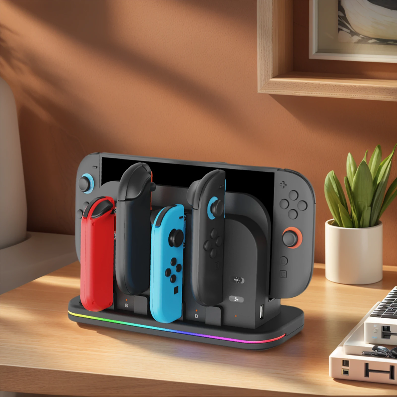 2.Carga de múltiples dispositivos:Equipado con 8 ranuras de carga, este soporte externo para consola de juegos admite la carga simultánea de 1 a 4 controladores Joypad N-S o N-S 2.Mantenga sus controladores listos para la acción y disfrute de juegos multijugador ininterrumpidos con amigos y familiares.
