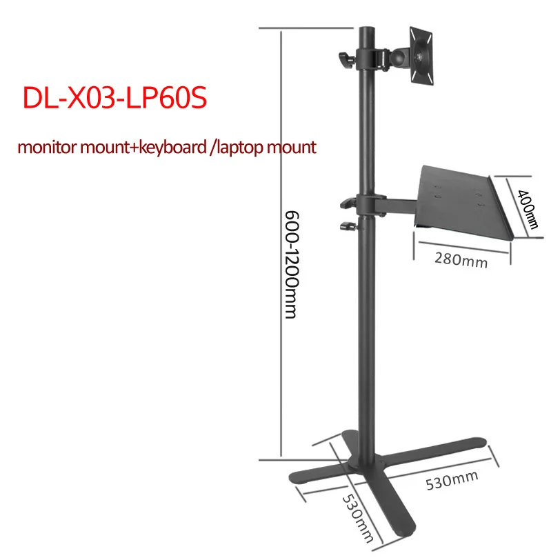 Comprar Base en forma de DL-X03 X, gran altura ajustable, 120cm, 100cm, soporte de suelo para monitor de estación de trabajo, bandeja para teclado, soporte para bandeja de ordenador portátil