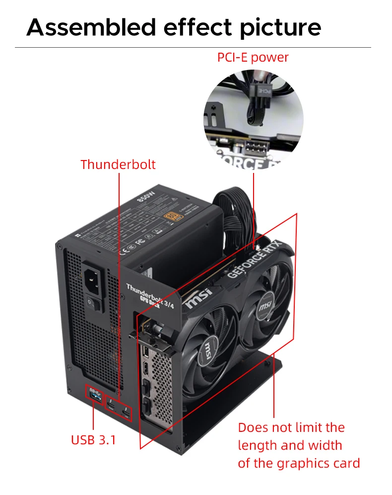 La entrega fue muy rápida, solo 9 días hasta Alemania. Estoy utilizando un Dell 7577 con un procesador i7-7700HQ y una GPU dedicada GTX 1050 Ti. Conecté una RTX 5060 Ti de 16 GB y funcionó perfectamente.