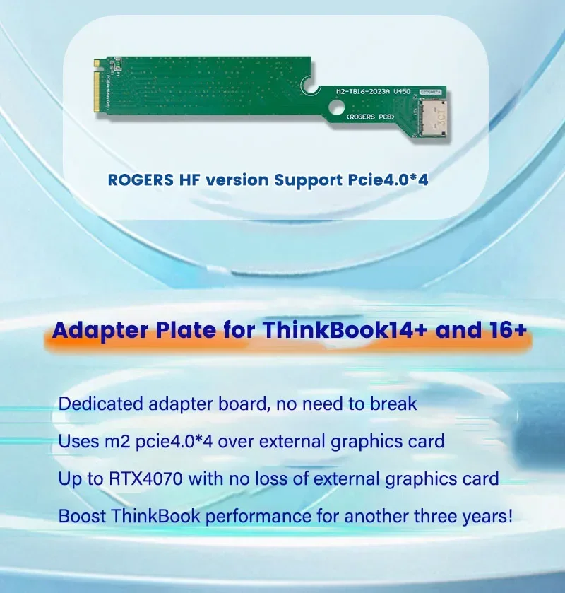 Convertidor M.2 a Oculink Graphics GPU Dock PCI-E 4,0x4 Gen4 64GTS para Thinkbook 14 + 16 + Laptop placa adaptadora de tarjeta de vídeo externa