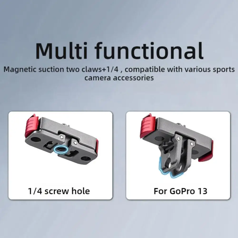 5.Interfaz multifunción, dos garras magnéticas + interfaz 1/4, adecuada para varios accesorios de cámaras deportivas.