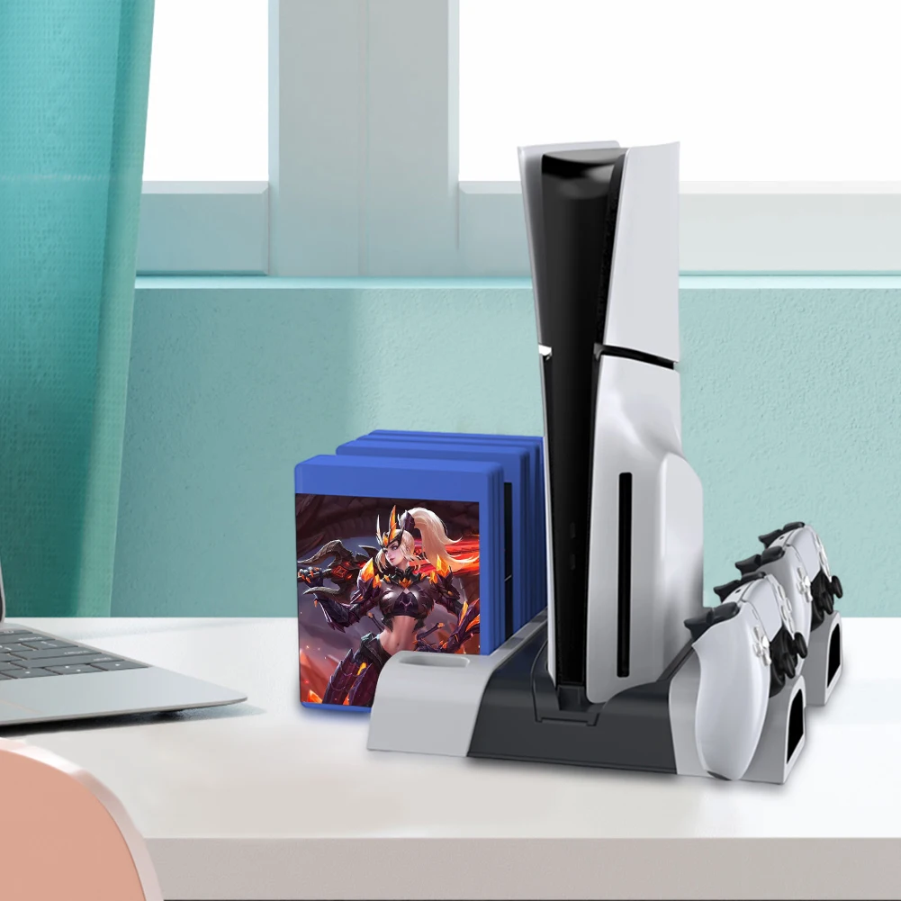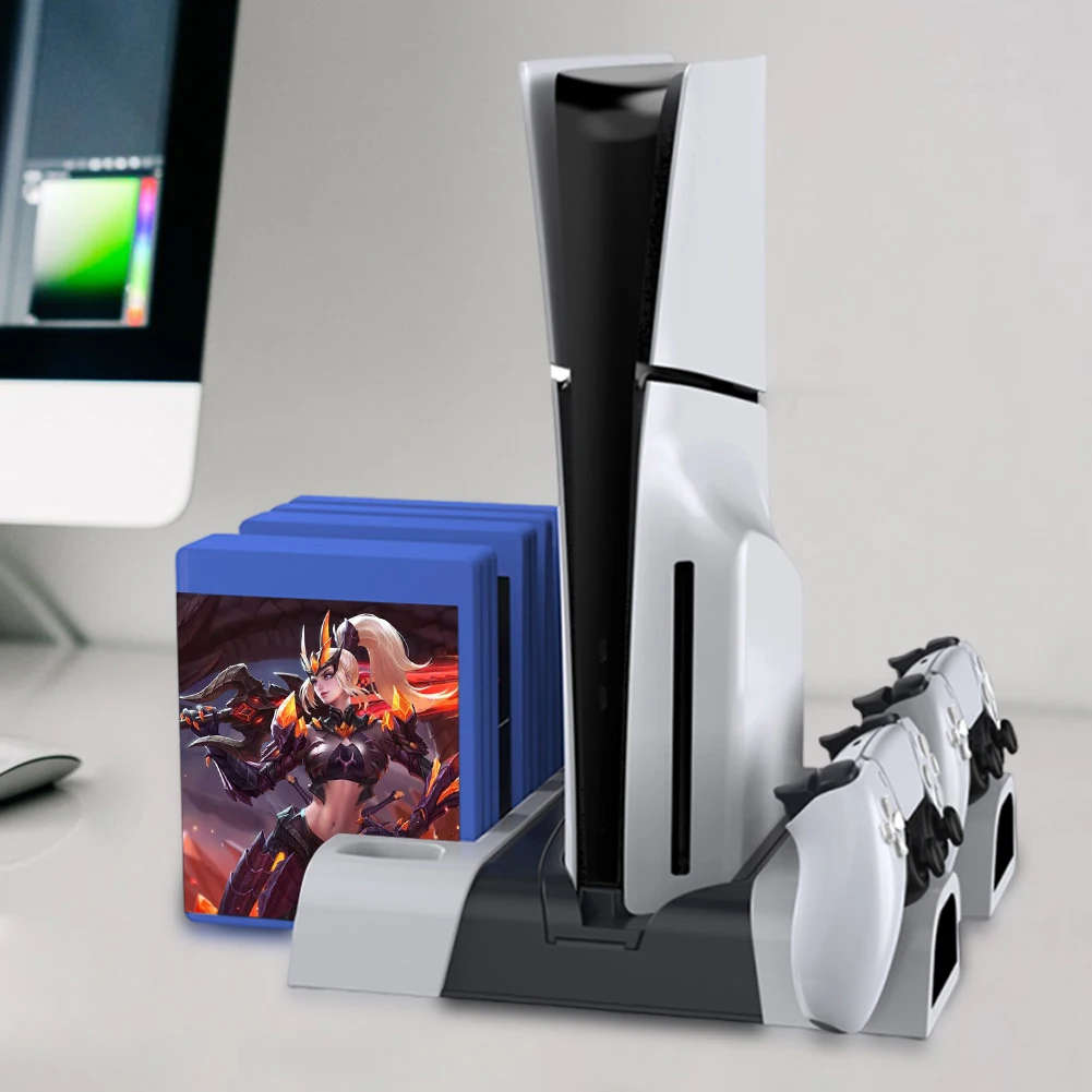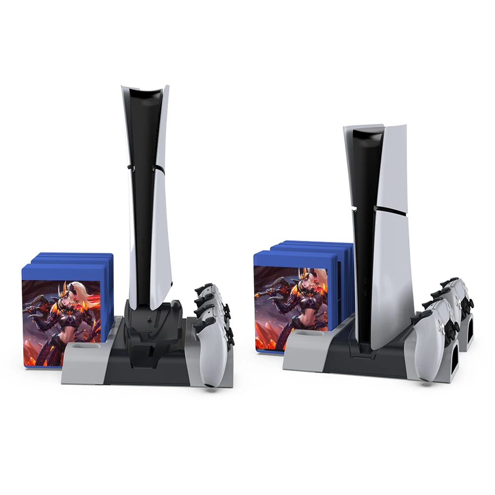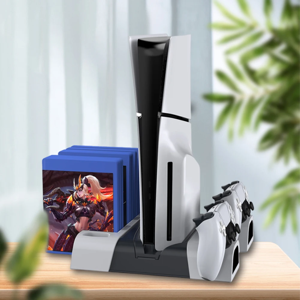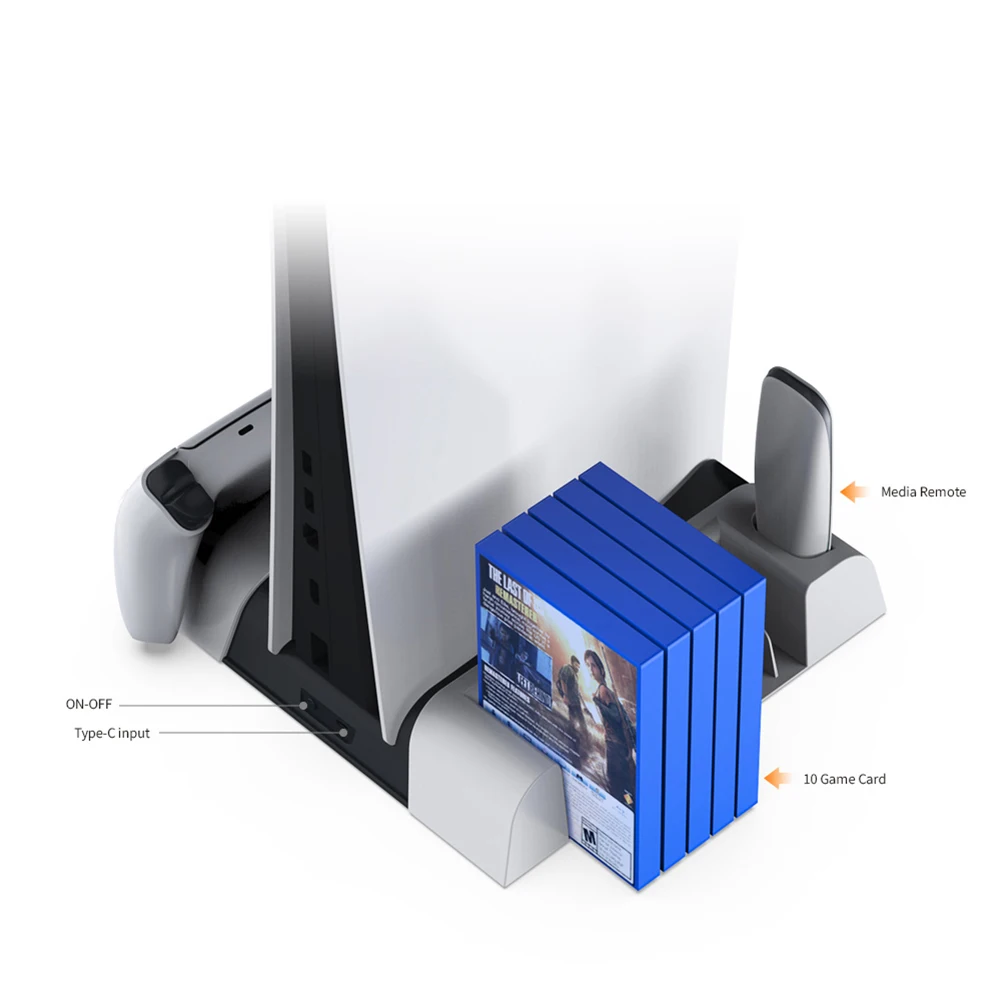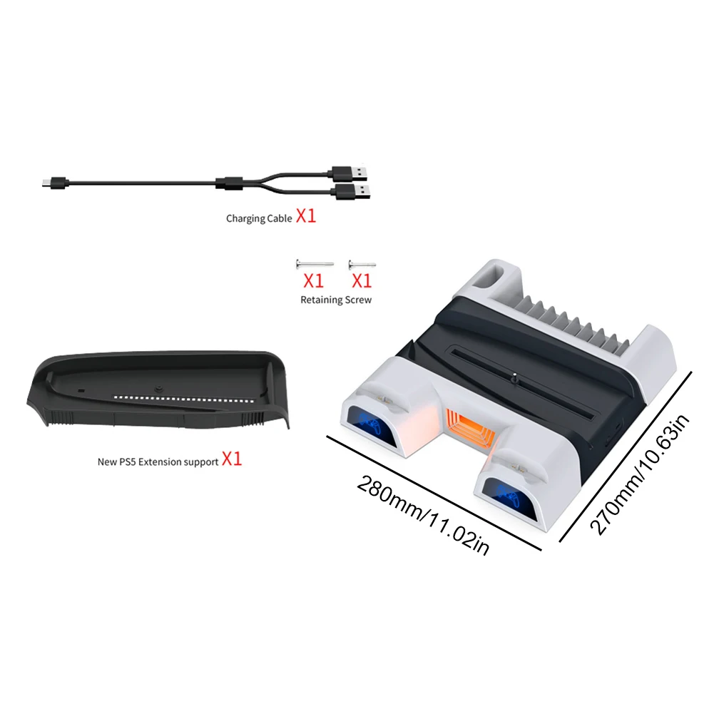 5. Diseño elegante y durabilidad:Este soporte enfriador está diseñado para complementar tu consola PS5 con su aspecto elegante. Hecho con materiales de alta calidad, garantiza durabilidad y estabilidad para un uso duradero. No solo sirve como una práctica solución de carga, sino que también agrega un toque elegante a su configuración de juego.