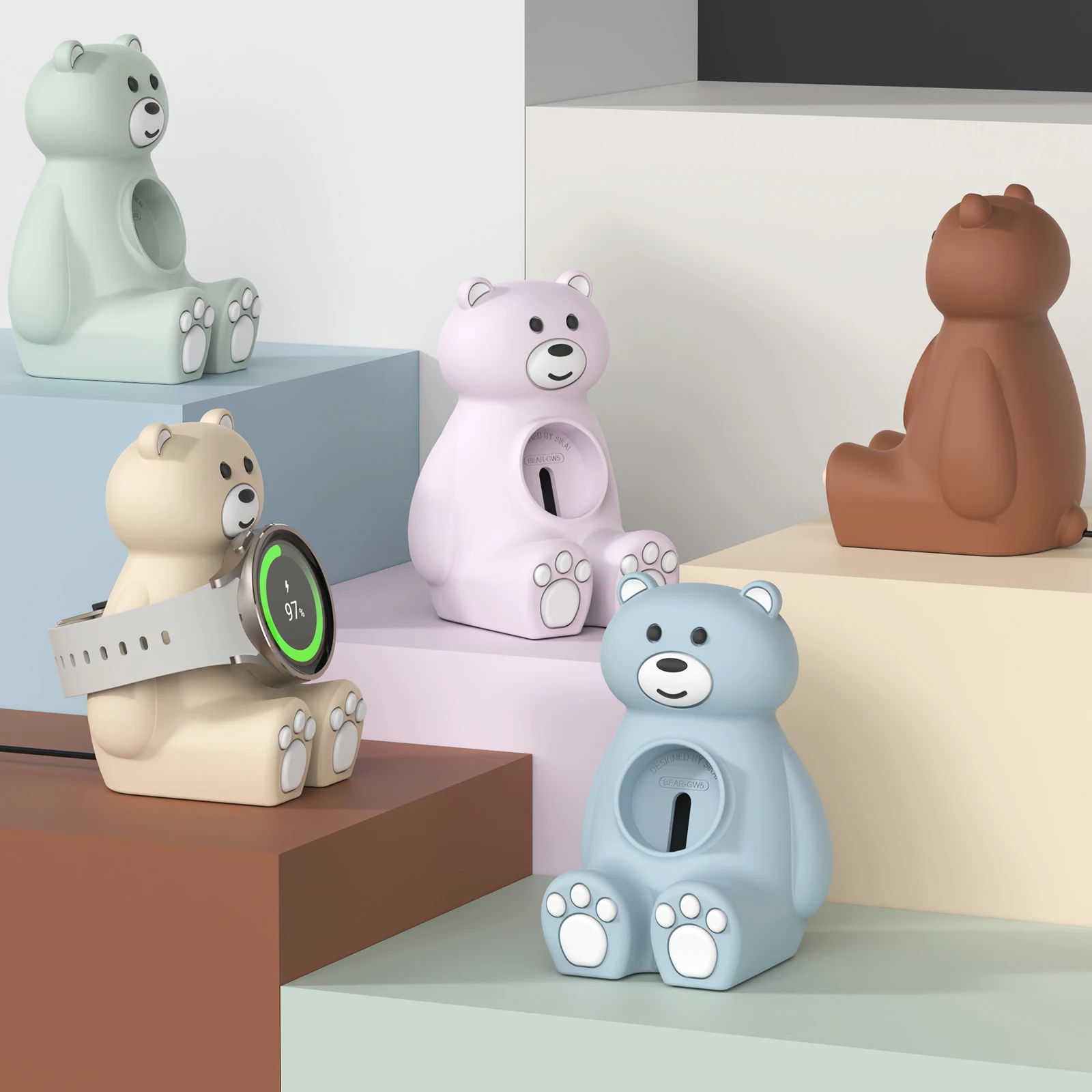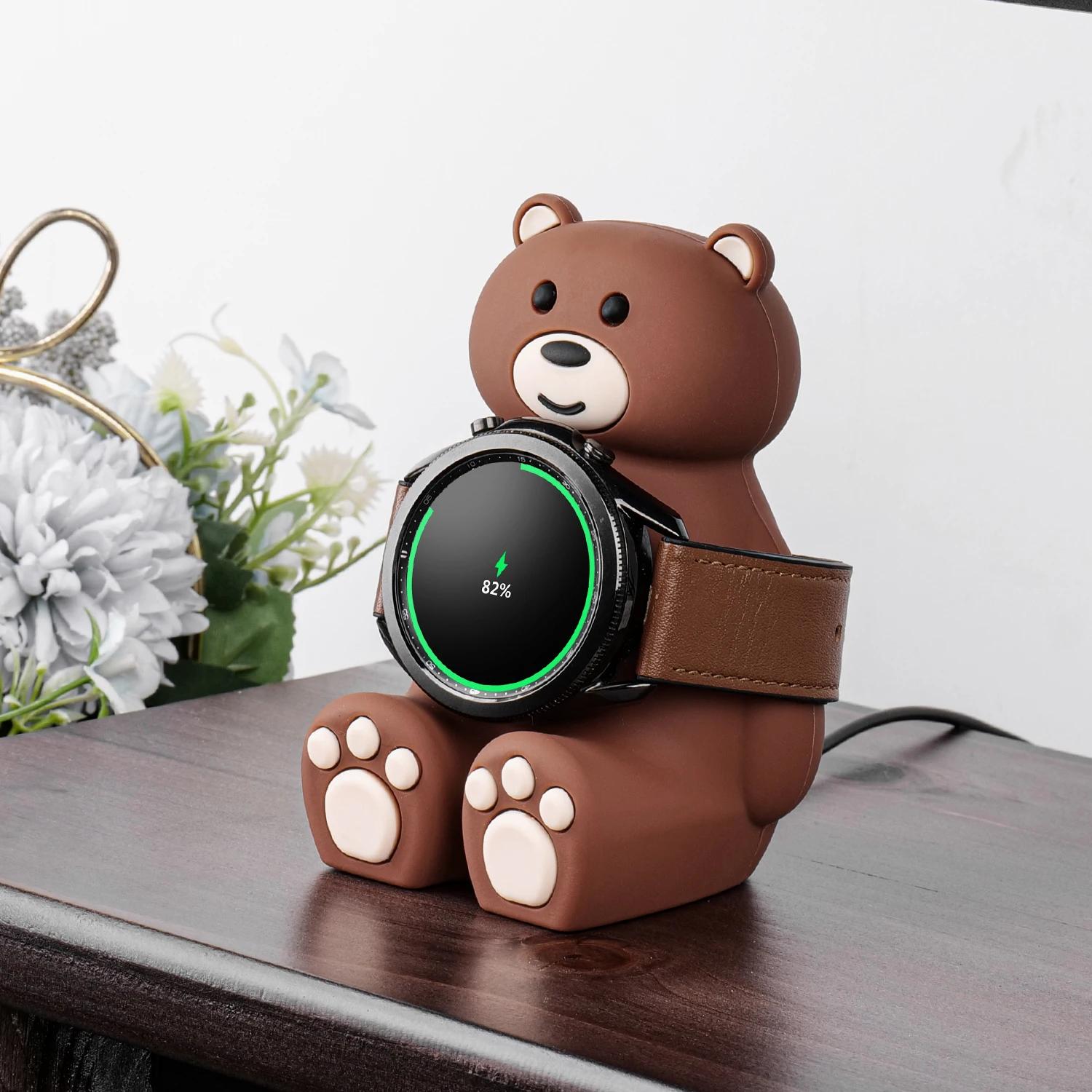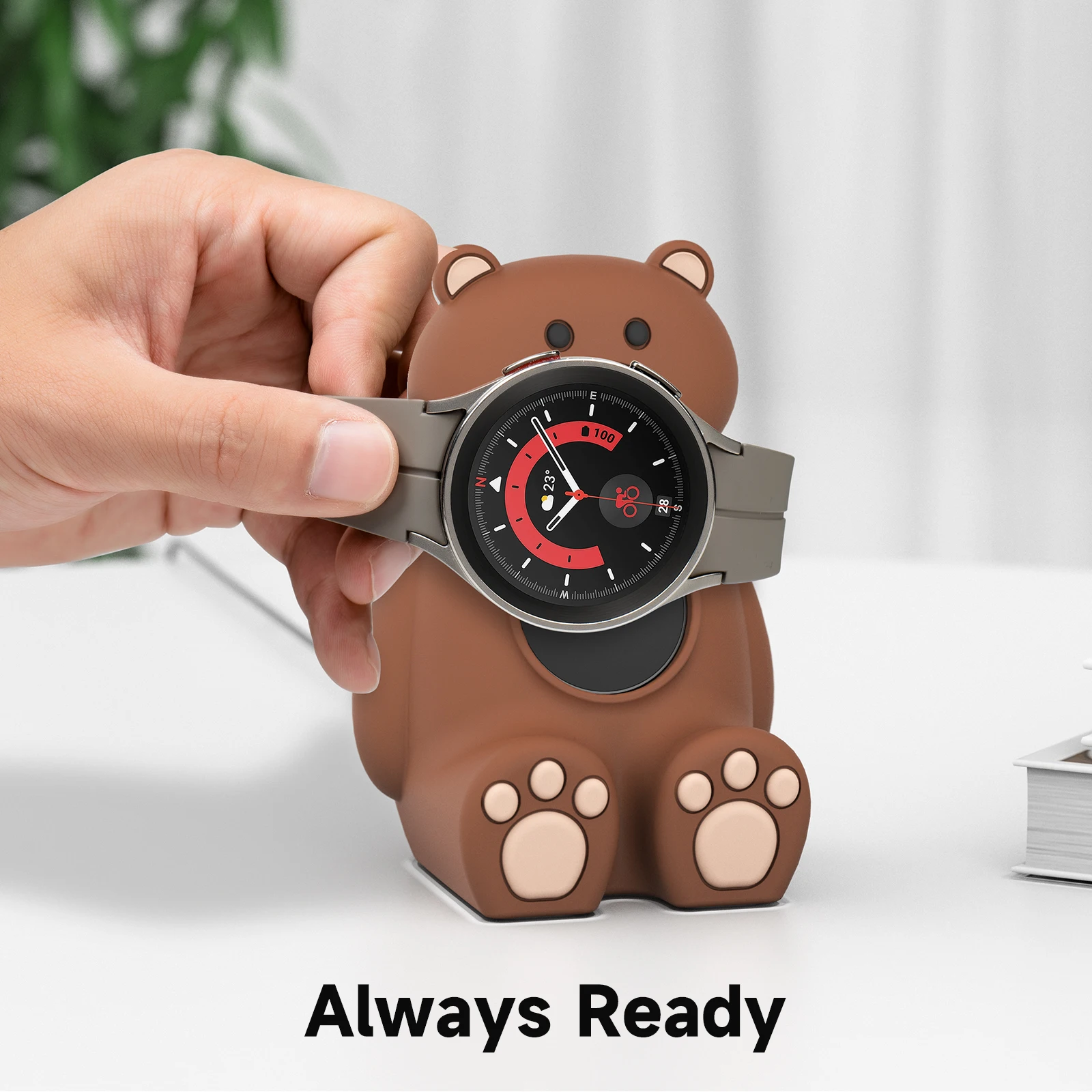 El bonito diseño de oso hace que sea fácil cargar tu Galaxy Watch. Simplemente coloca tu Galaxy Watch en el soporte para cargar tu reloj;