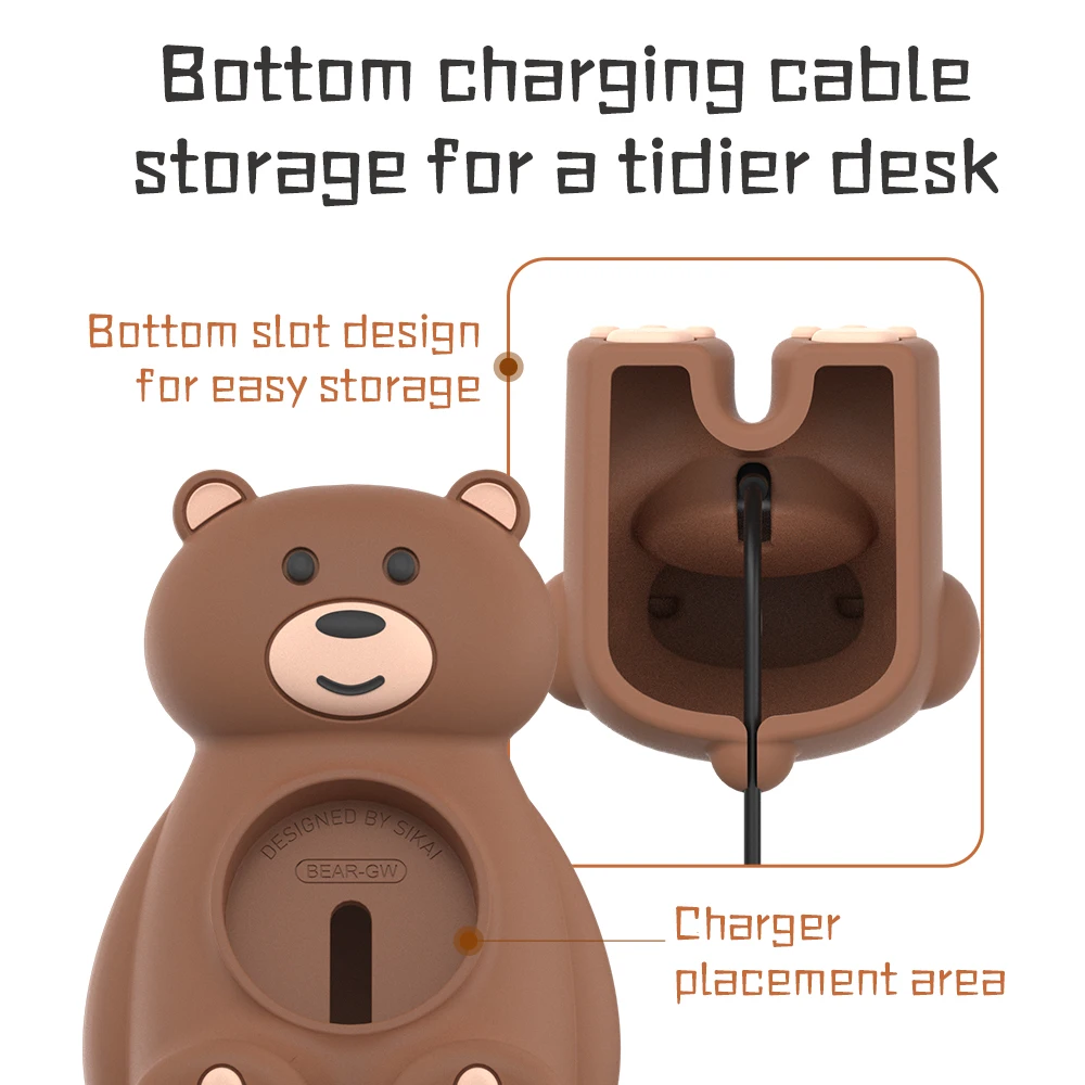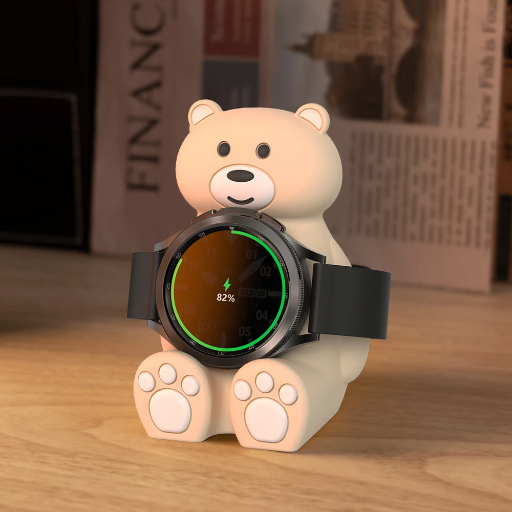 El bonito diseño de oso hace que sea fácil cargar tu Galaxy Watch. Simplemente coloca tu Galaxy Watch en el soporte para cargar tu reloj;
