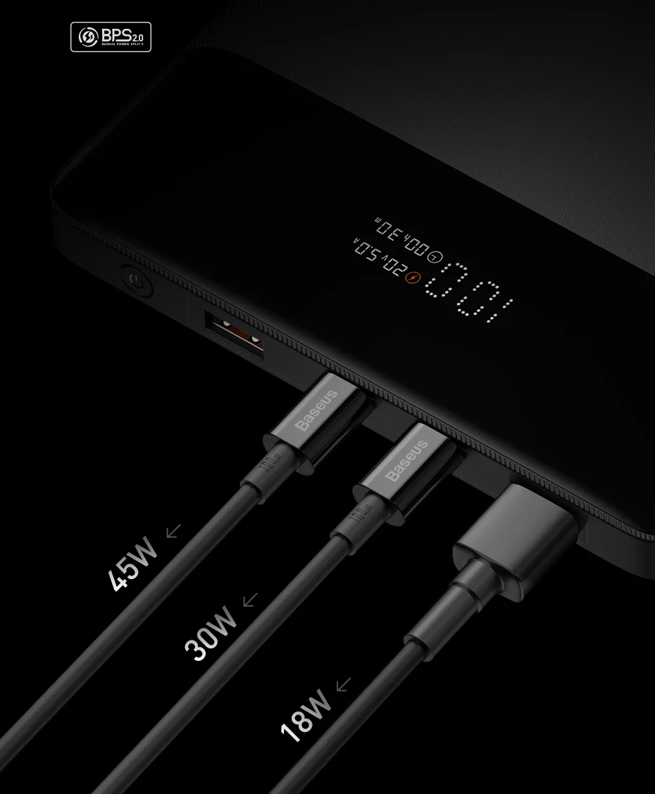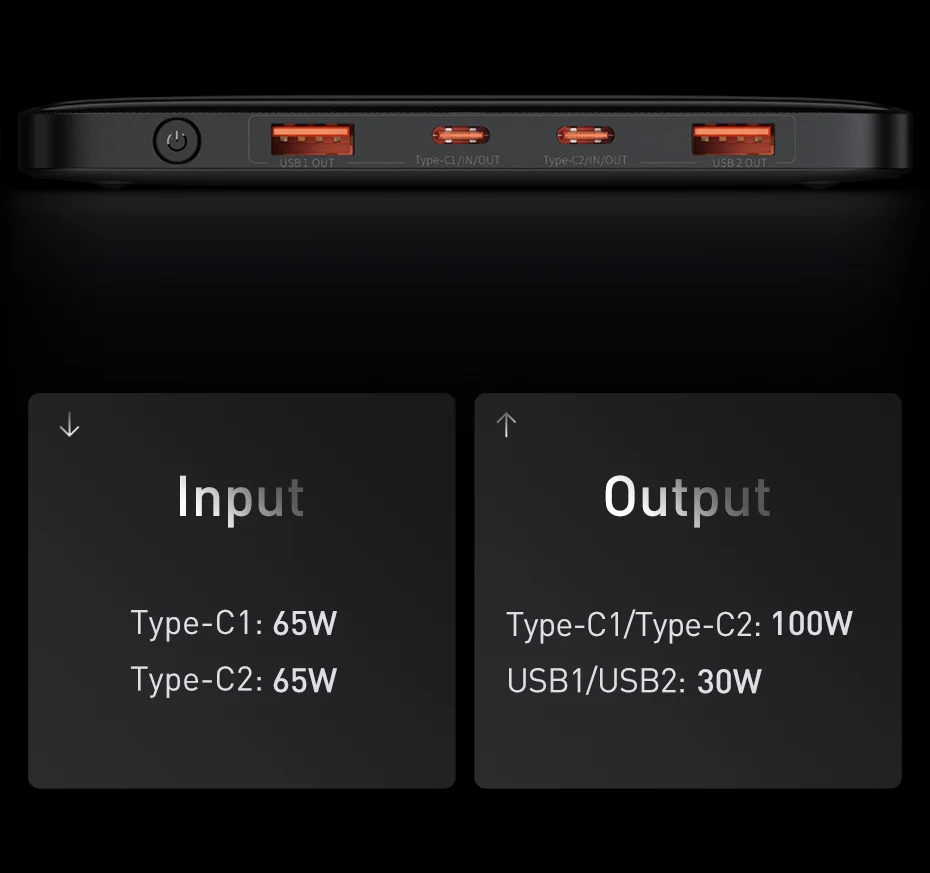 Tipo C 1 + Tipo C2 + Salida USB: 45W + 30W + 18W