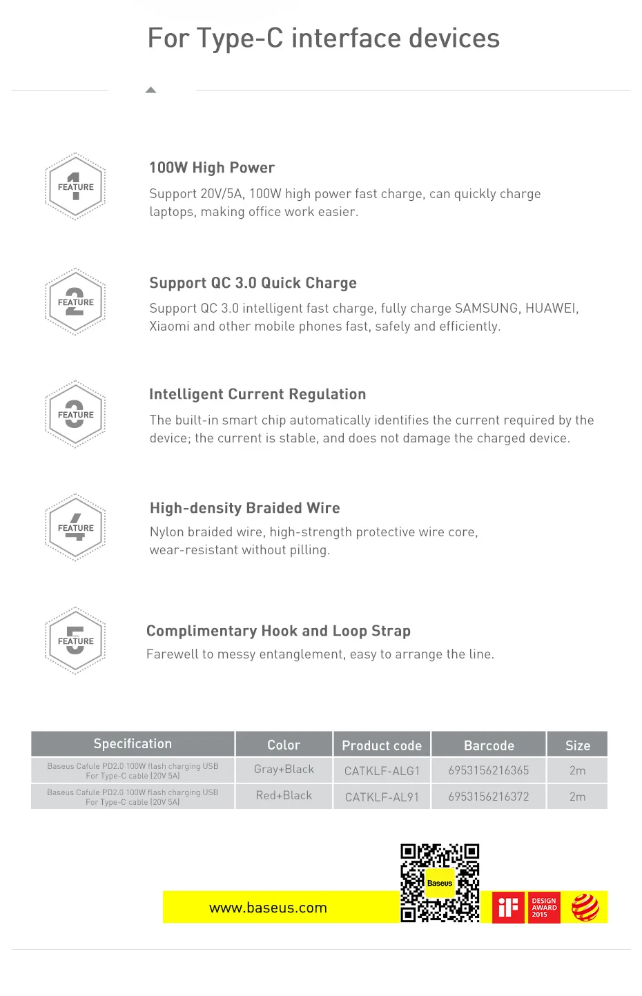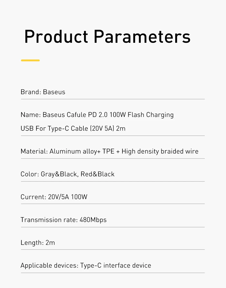 Comprar Baseus 100W USB C a USB a Cable de tipo C para Huawei Samsung S20 QC 3,0 de carga rápida Cable de datos para Xiaomi Macbook Pro USB-C Cable