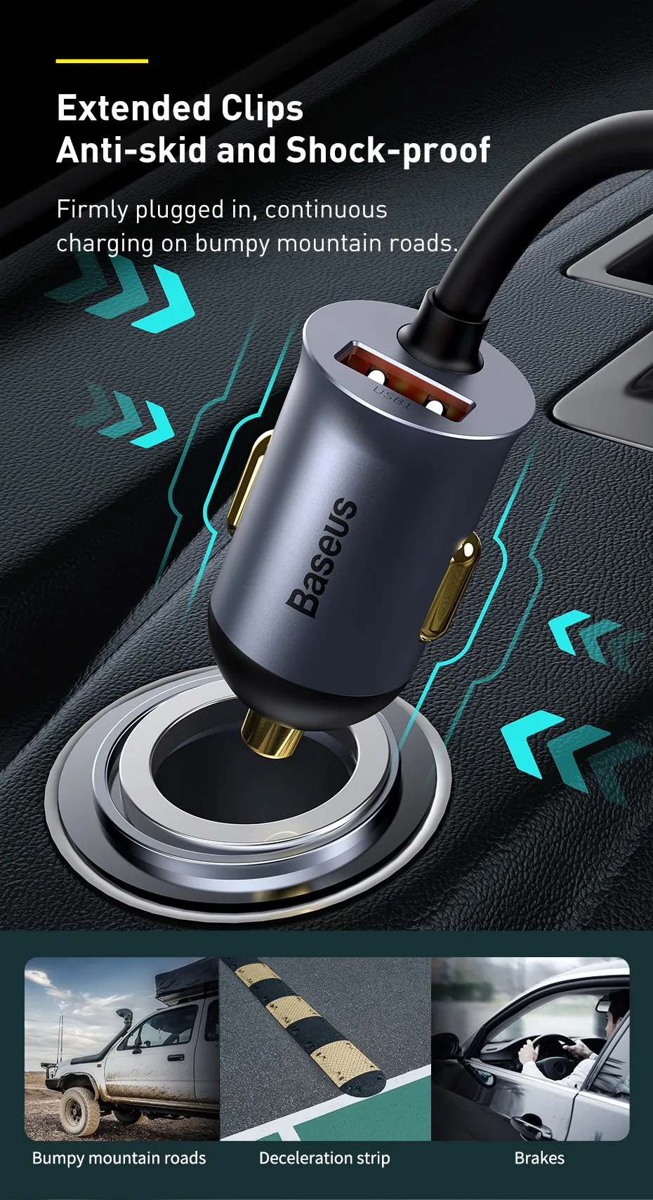 Clips extendidos antideslizantes y a prueba de golpesConexión firme, carga continua en caminos de montaña con baches.