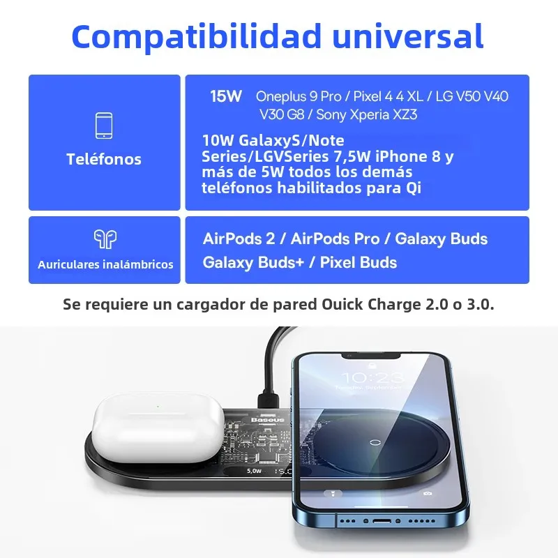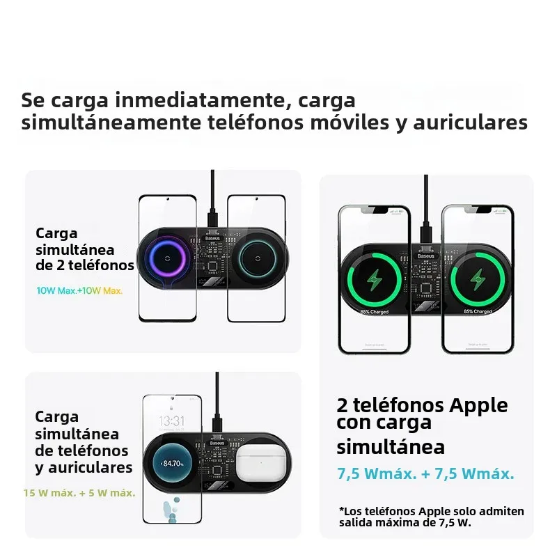 Comprar Baseus 20W cargadores inalámbricos duales para iPhone 16 15 14 Airpod Pro cargador inalámbrico Qi rápido para Samsung Xiaomi 12 Pro almohadilla de carga