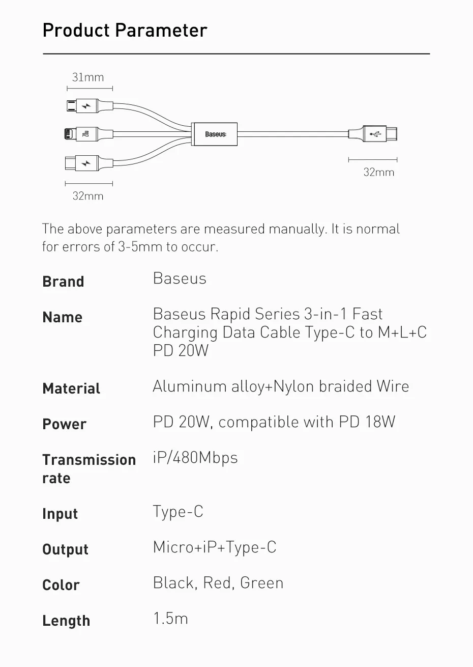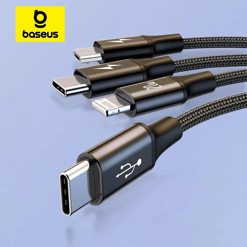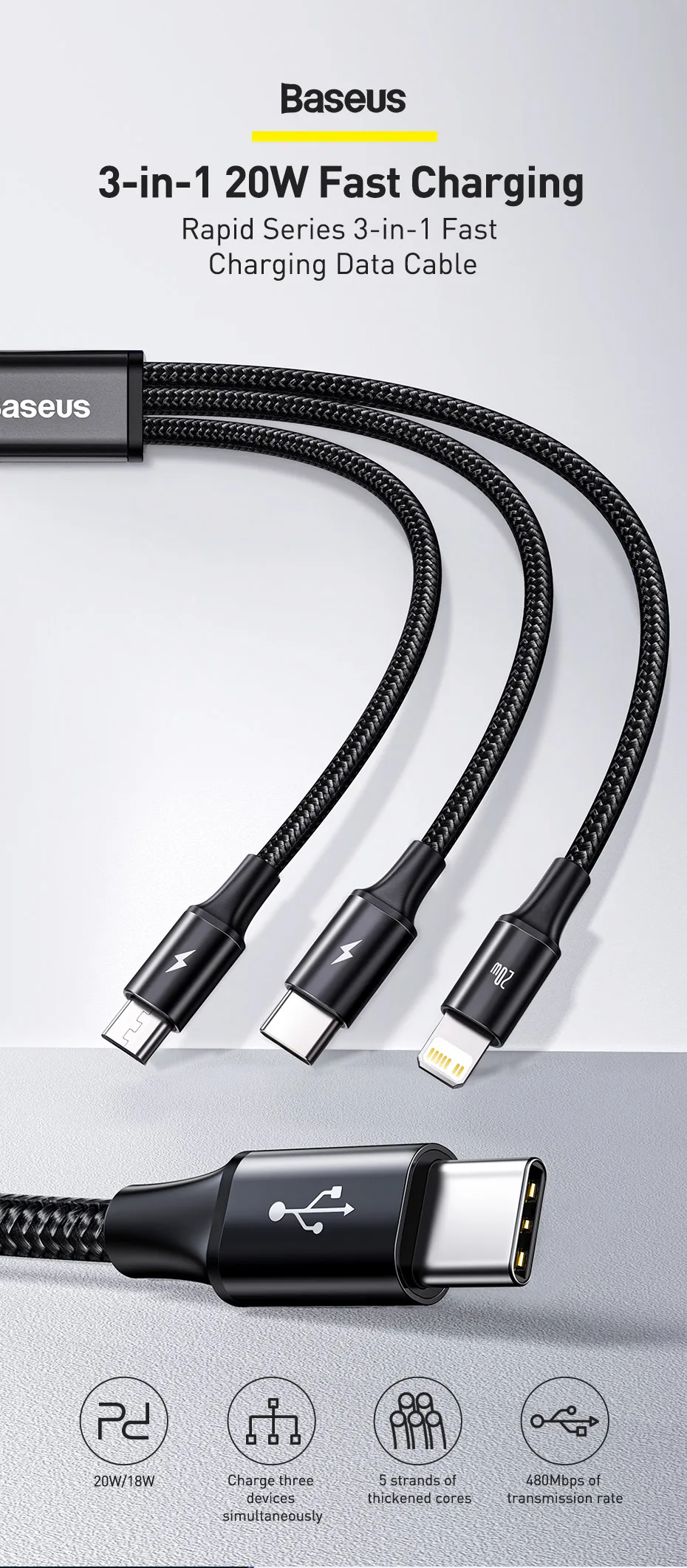 Comprar Baseus 20W PD 3 en 1 Cable USB tipo C para iPhone 15 14 13 12 Xs Max Cable cargador para MacBook iPad Pro Samsung Xiaomi Cable USB