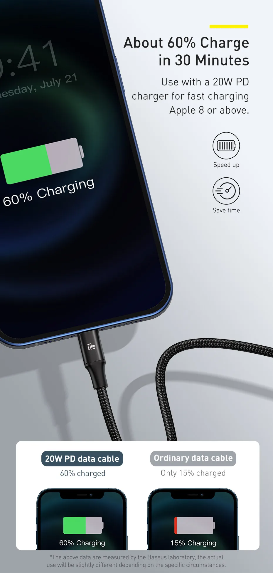 Úselo con un cargador PD de 20 W para cargar rápidamente Apple 8 o superior.