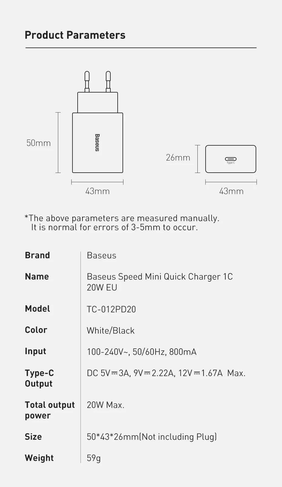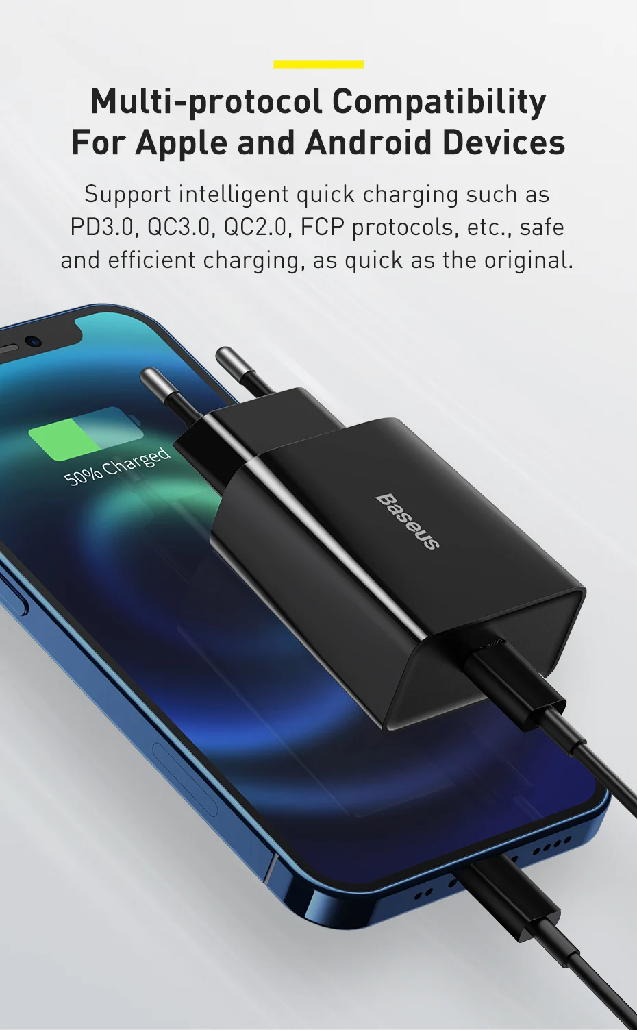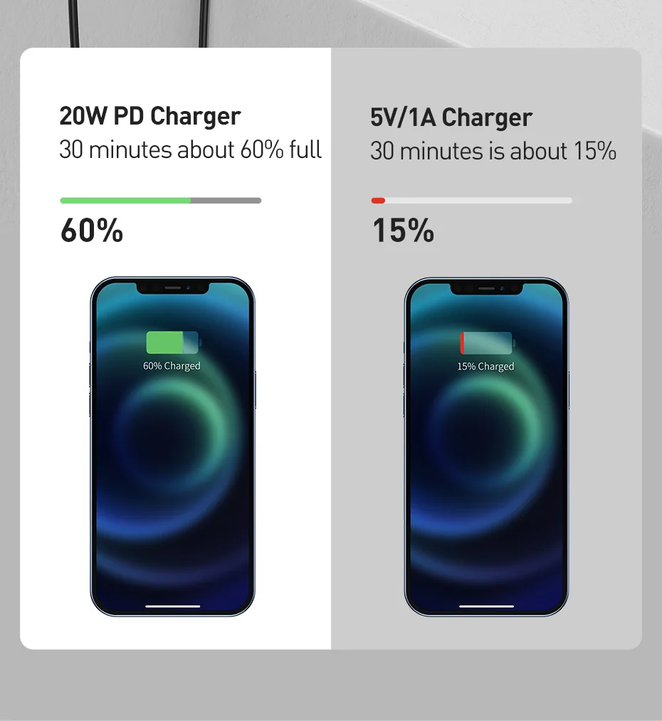 • 20W Max Output Power :With a maximum output power of 20W, this charger can handle even the most power-hungry devices like tablets and laptops.