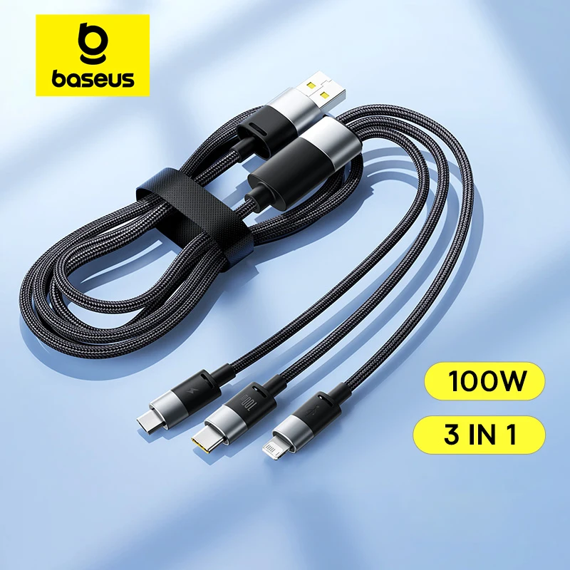 Comprar Baseus 3 en 1 Cable de 100W USB C a tipo C PD cargador rápido Cable de carga rápida de datos para Macbook iPhone Samsung Xiaomi Cable de teléfono