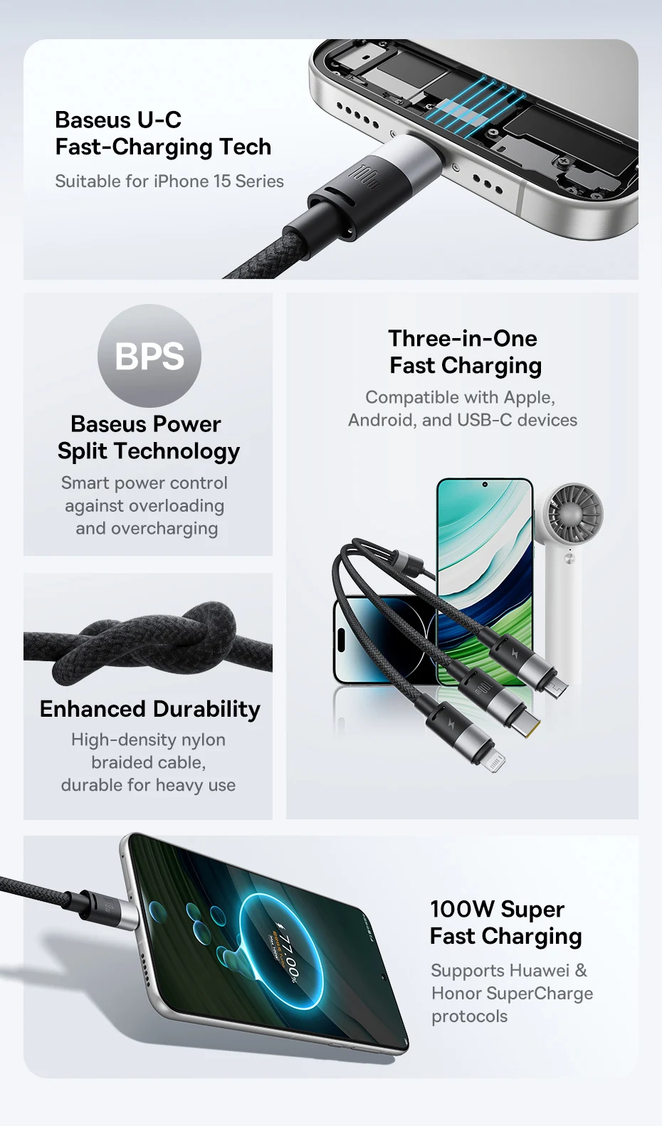 Tecnología de carga rápida Baseus U-CLibera todo el potencial de tu dispositivo.Carga rápida de 7,5 W, adecuada para iPhone Serie 15.