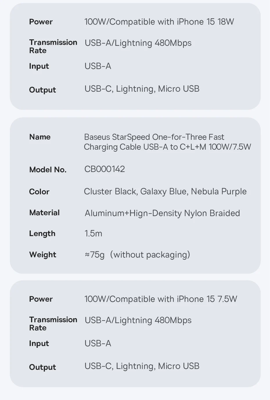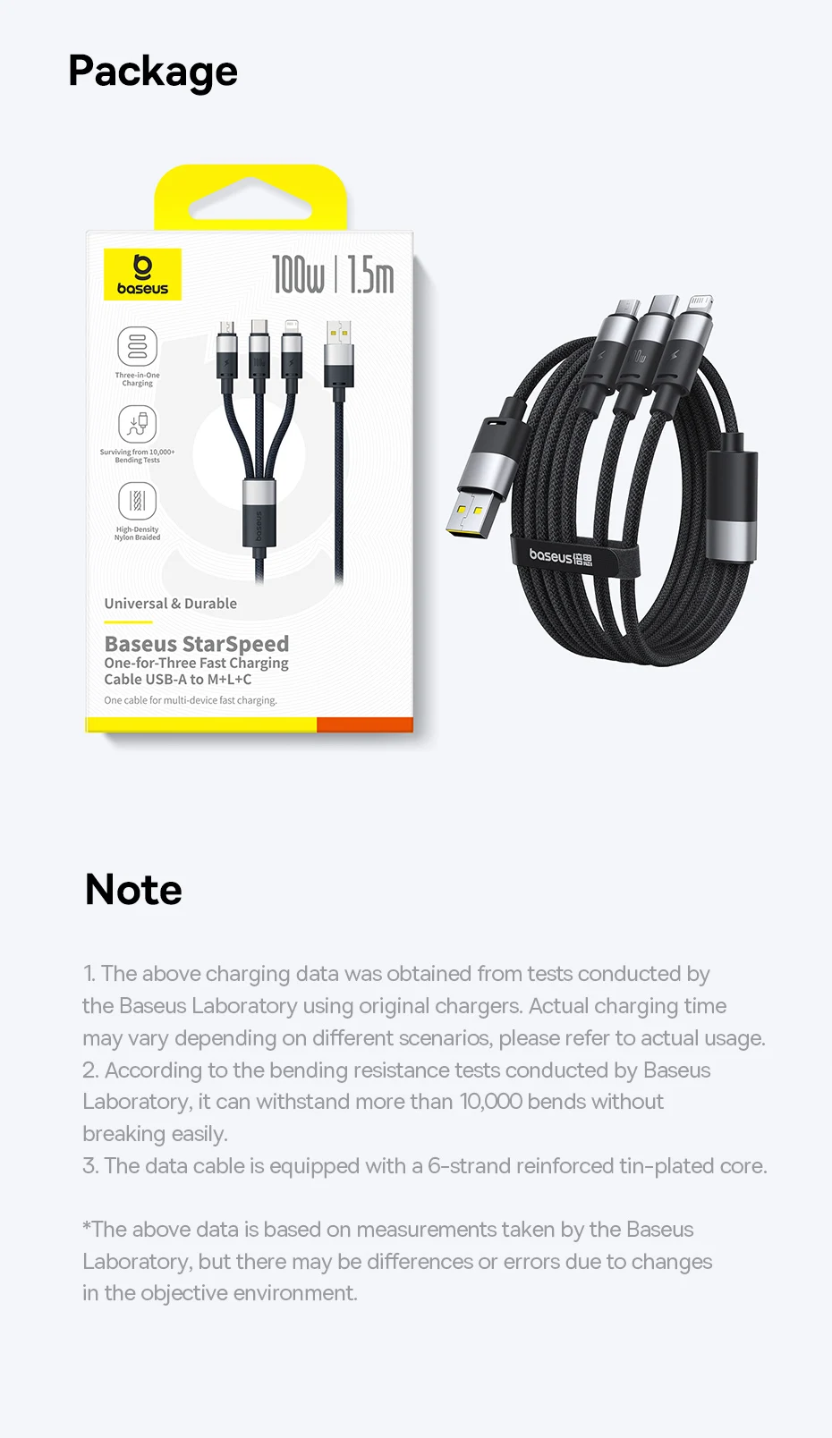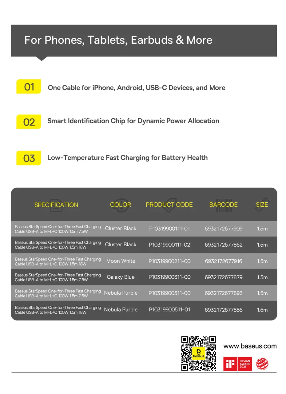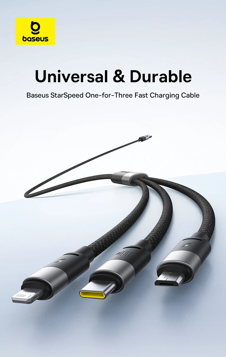 Cable de carga rápida Baseus StarSpeed uno por tres