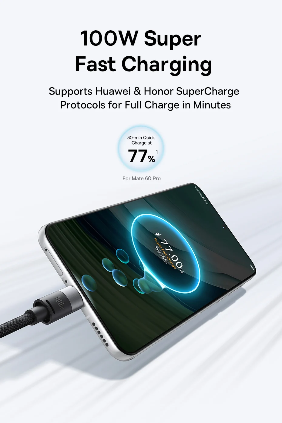 Admite protocolos Huawei y Honor Super Charge para carga completa en minutos