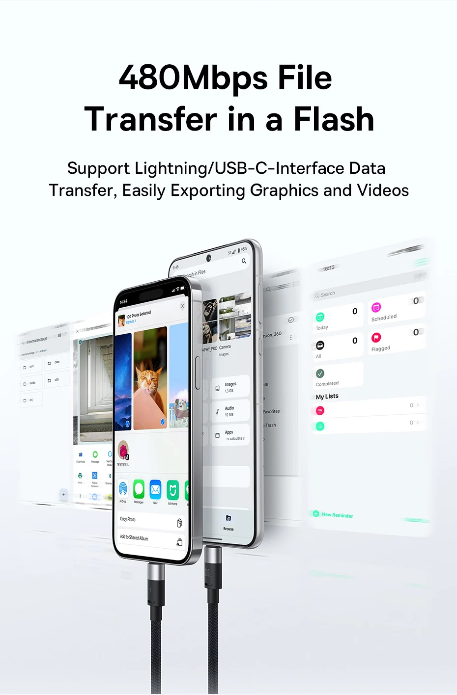 Admite transferencia de datos de interfaz Lightning/USB-C, exporta fácilmente gráficos y vídeos