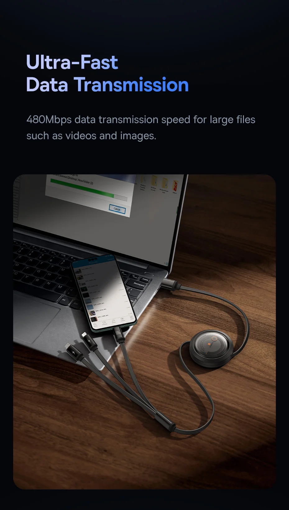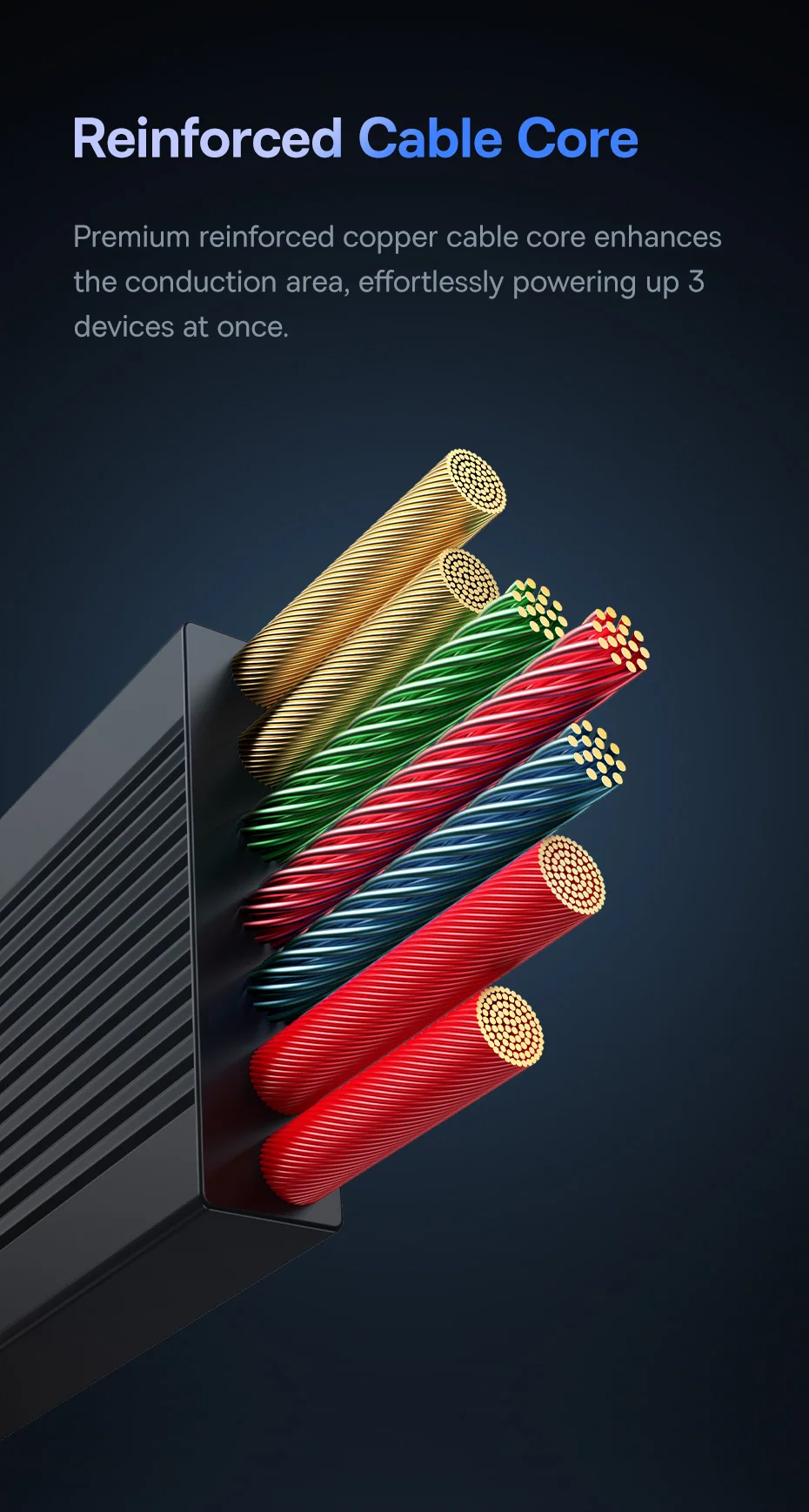 El núcleo del cable de cobre reforzado de primera calidad mejora el área de conducción, alimentando sin esfuerzo 3 dispositivos a la vez.