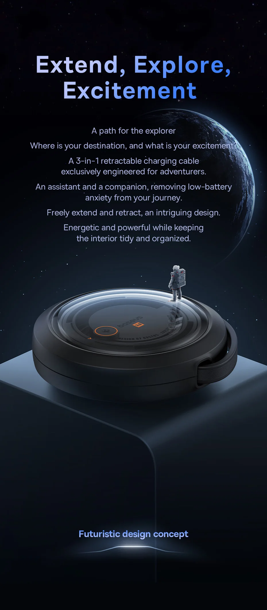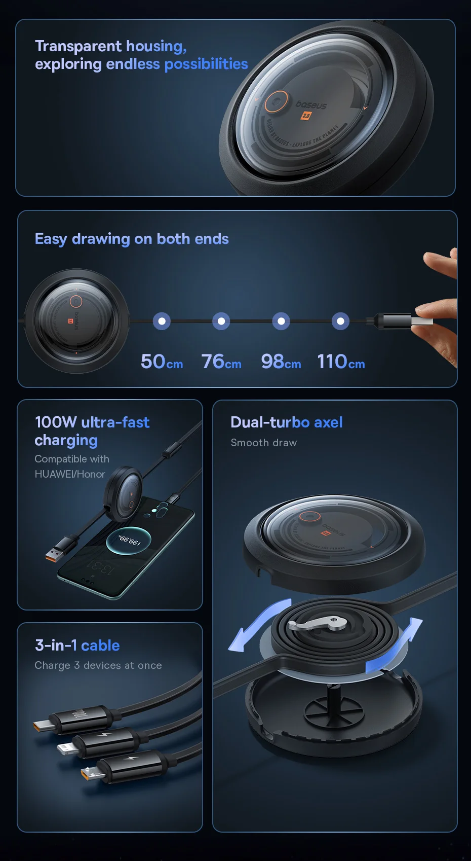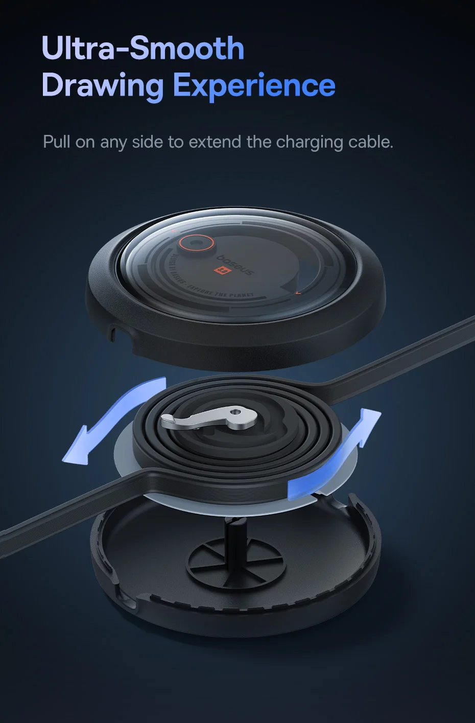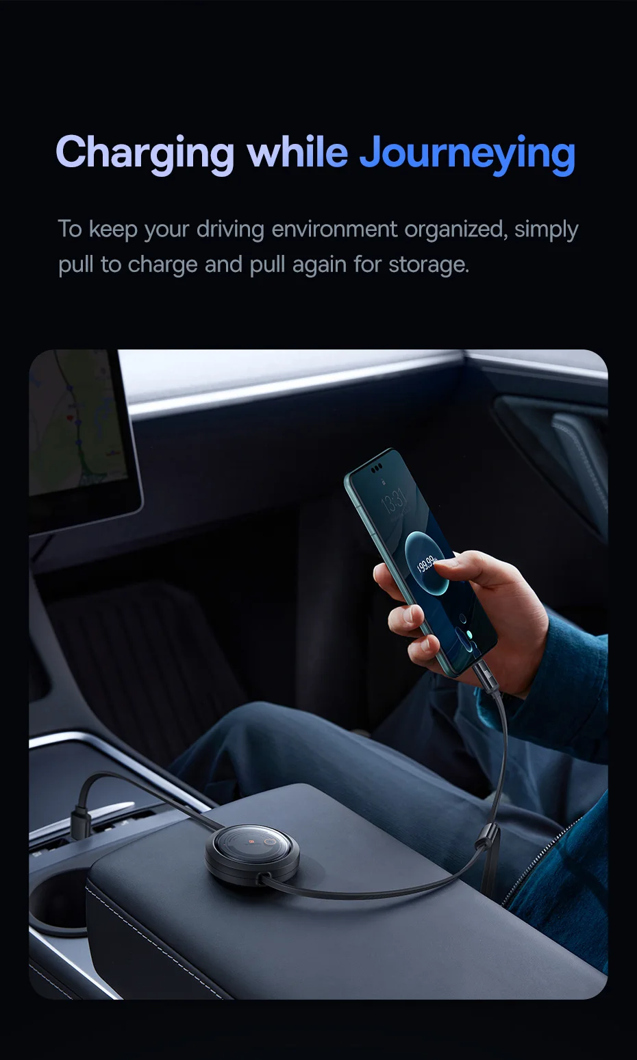 Para mantener organizado su entorno de conducción, simplemente tire para cargar y tire de nuevo para almacenarlo.