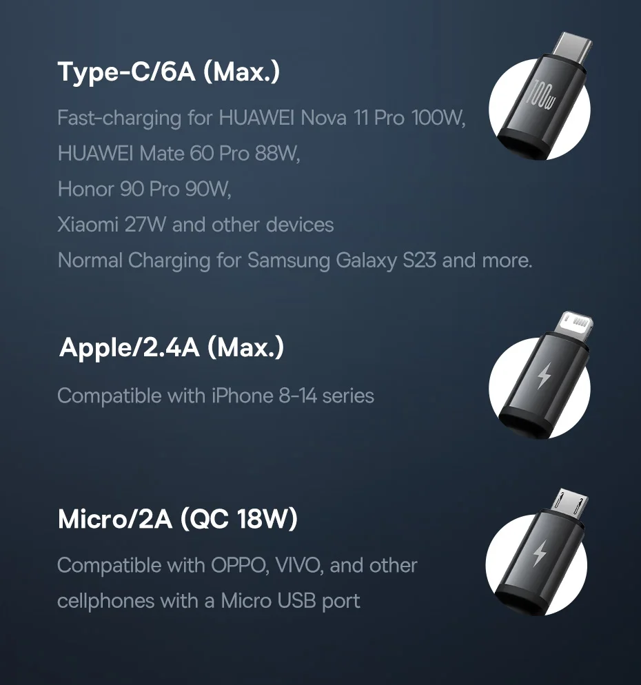 3.Carga rápida PD 100W: Compatible con HUAWE//Honor