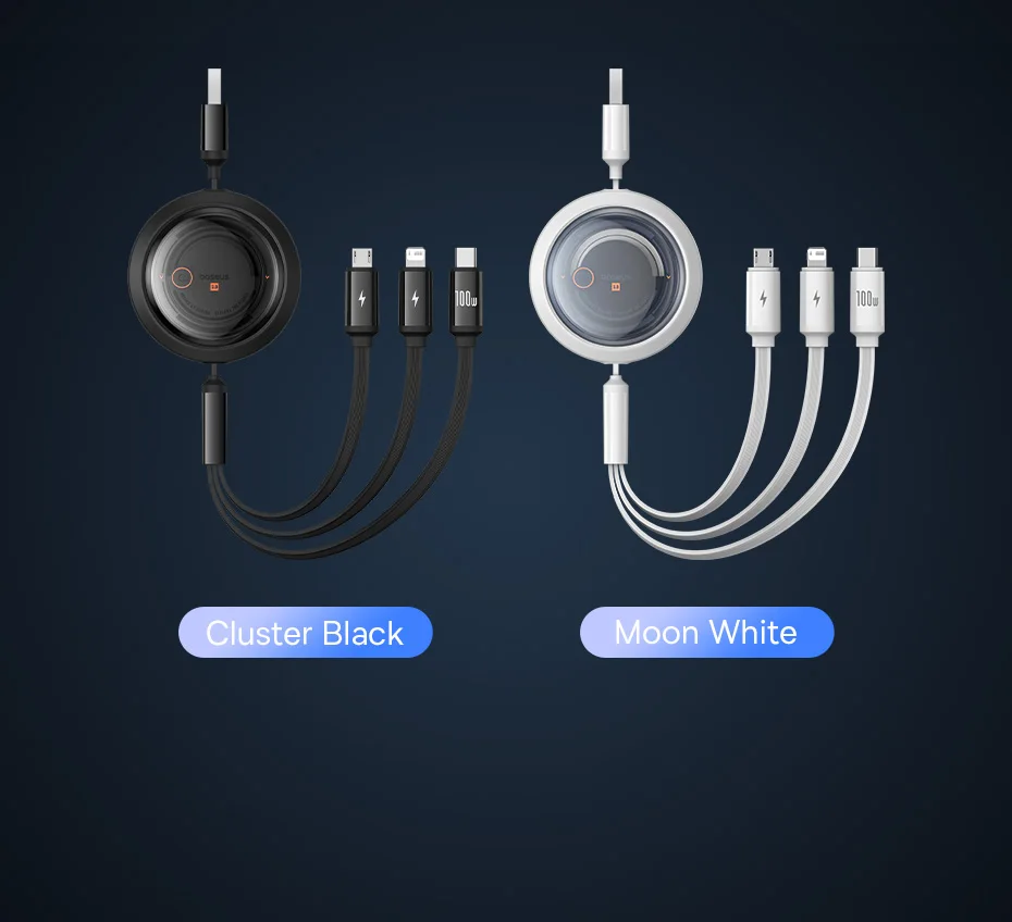 Cable de datos de carga rápida retráctil Baseus USB a M+L+C 100W
