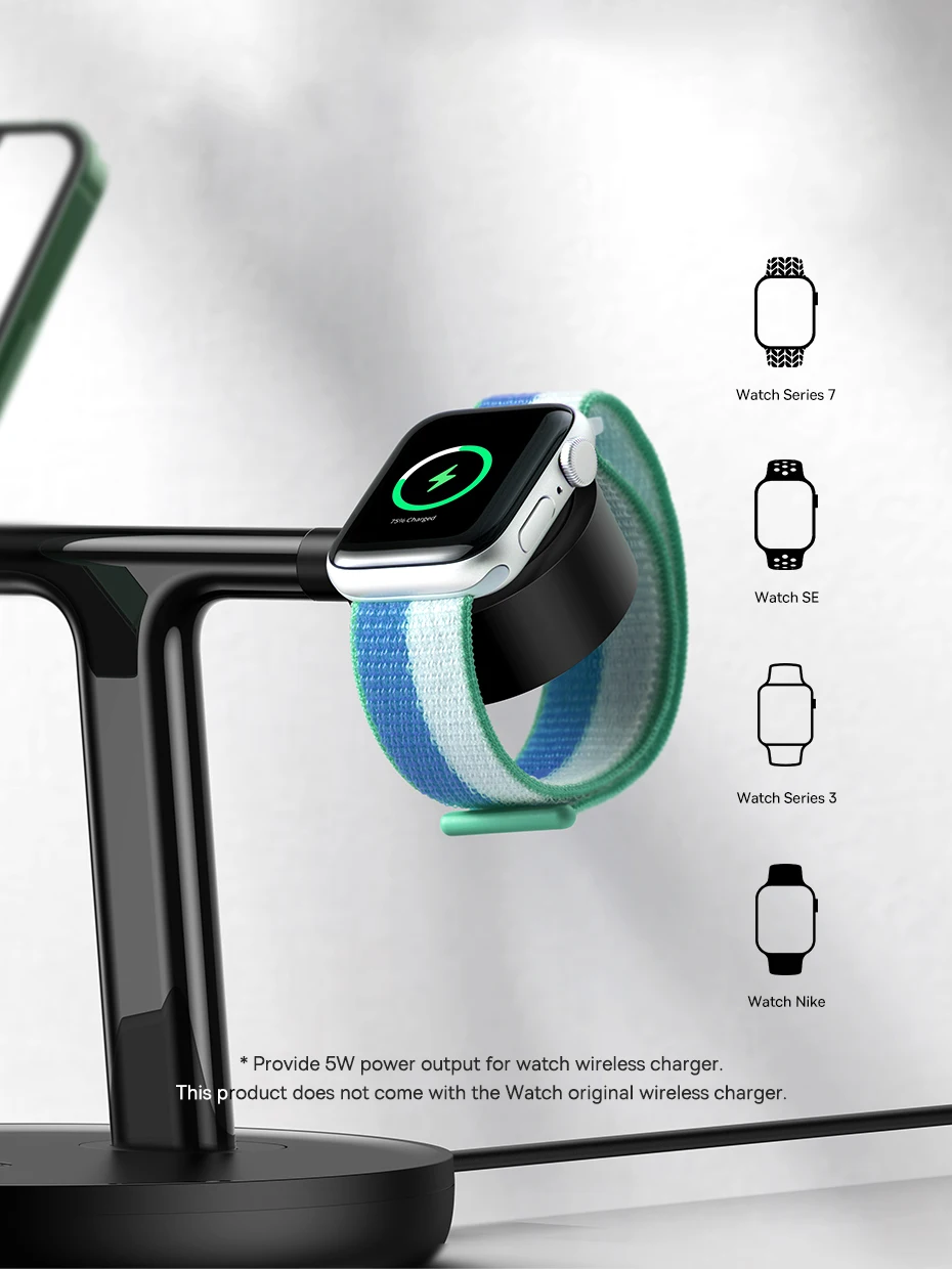 Cargue simultáneamente su teléfono móvil + Apple Watch + auriculares.