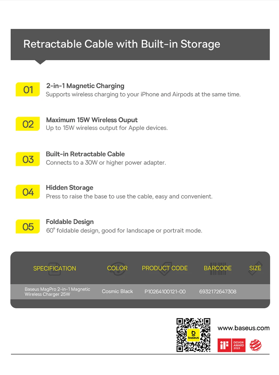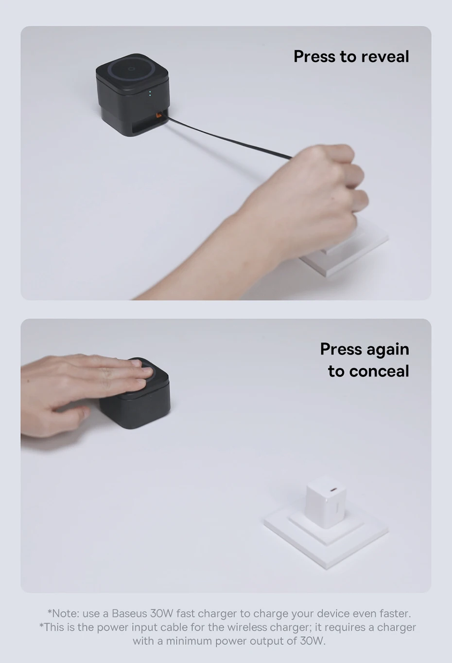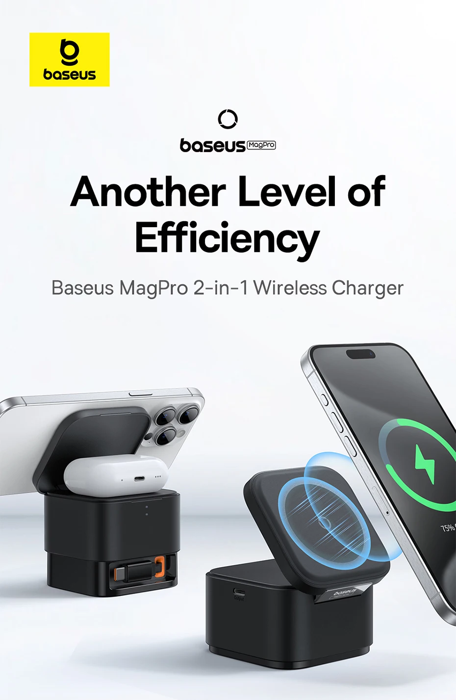 Nota: Cargue este artículo con un cargador rápido de 30W, la velocidad de carga será más rápida y adecuada.Cargador inalámbrico Baseus MagPro 2 en 1